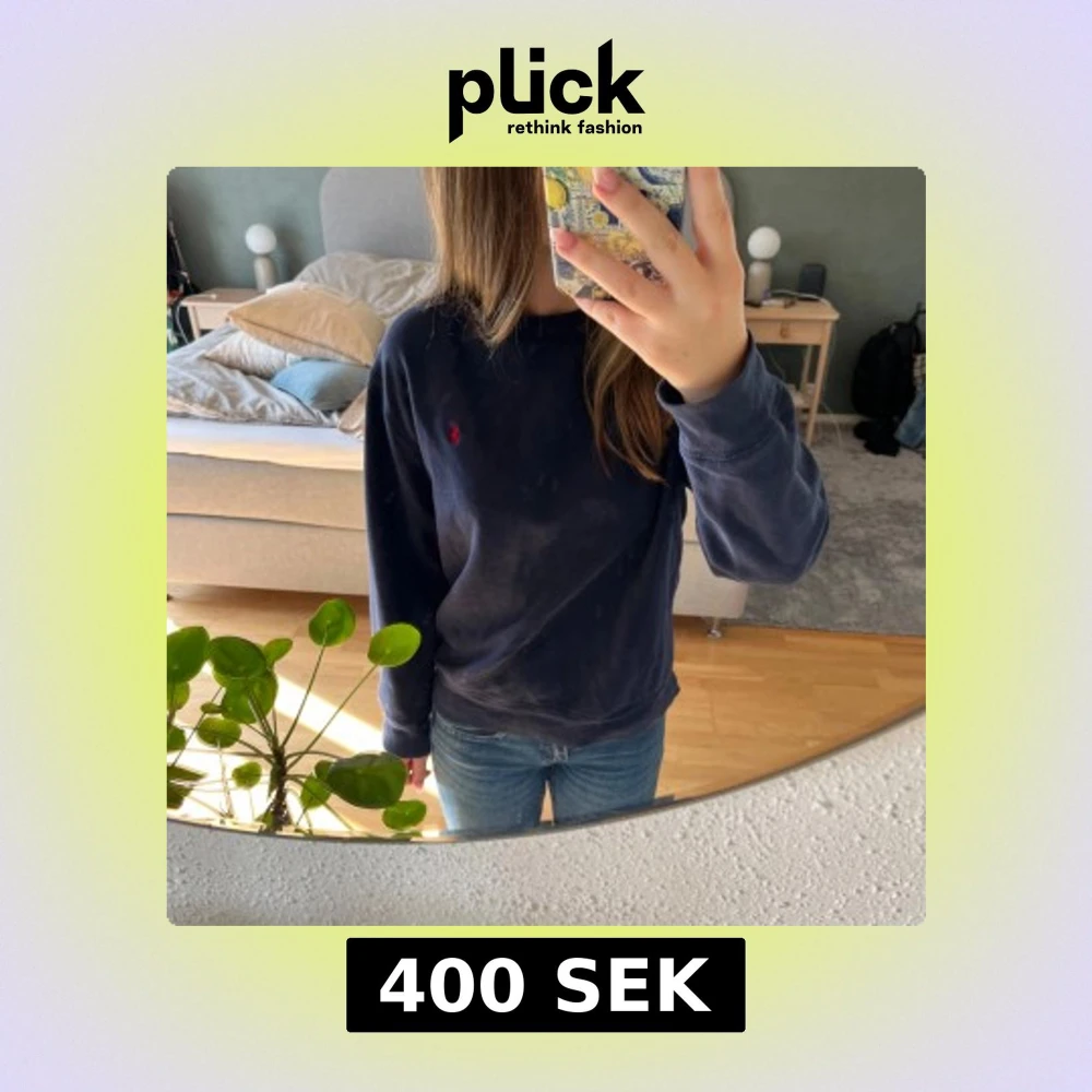 Mörkblå sweatshirt från Ralph Lauren med klassisk röd broderad logga på bröstet. Tröjan har rund halsringning och långa ärmar. Skön passform och enkel stil som funkar till jeans eller andra byxor.