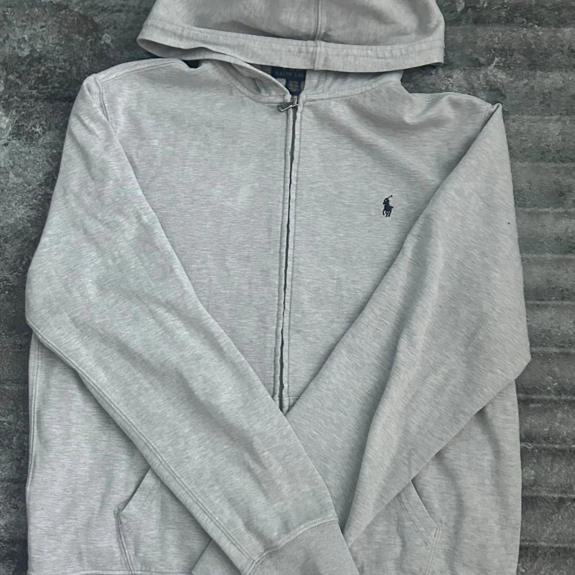 Grå Ralph Lauren zip hoodie – storlek XL (barn, passar ca 170 cm) 🩶 Superfin hoodie i klassisk grå färg med ikoniska 🐎 Polo-loggan broderad på bröstet. Mjuk, skön och sitter riktigt snyggt på! 🔥 Kvalitén är top notch – nästan som ny 💫 Perfekt för både chill och stiliga outfits 👌 💨 Bra passform, lyxig känsla och tidlös look! 📏 Storlek: XL (barn) – motsvarar ungefär 170 cm 💎 Skick: Jättebra skick, knappt använd