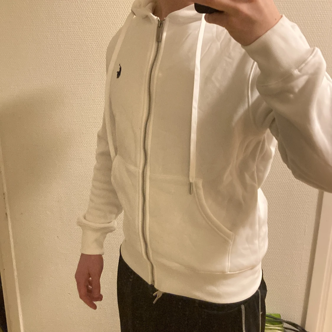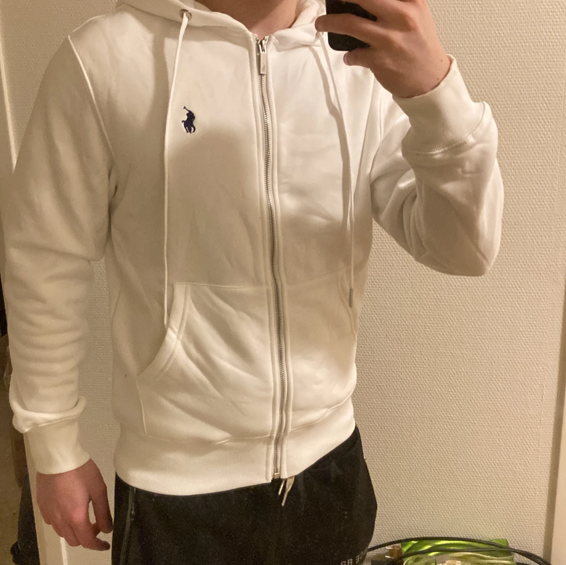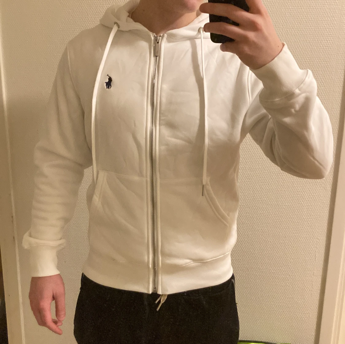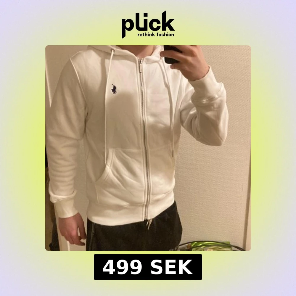 Vit Ralph lauren zip hoodie i fint skick. Passar perfekt nu till hösten/vintern när det börjar bli lite kallare.