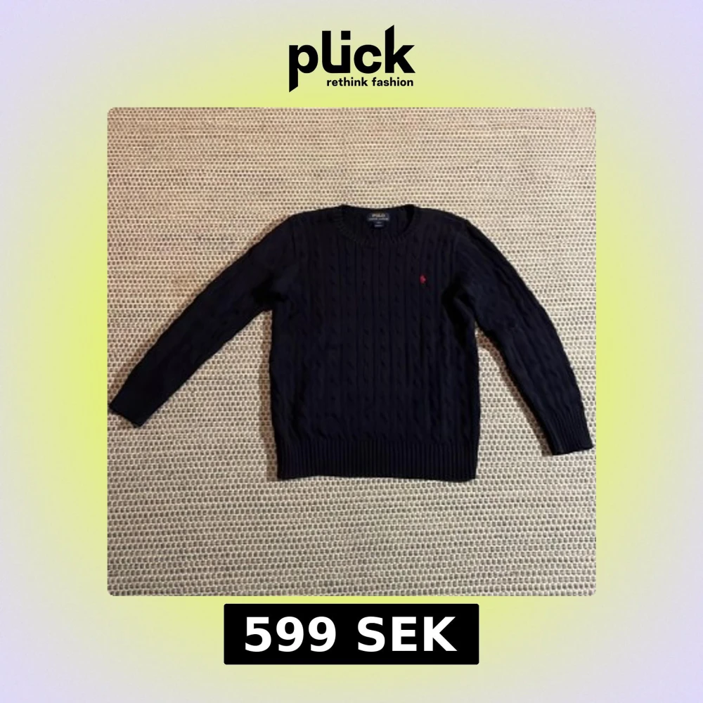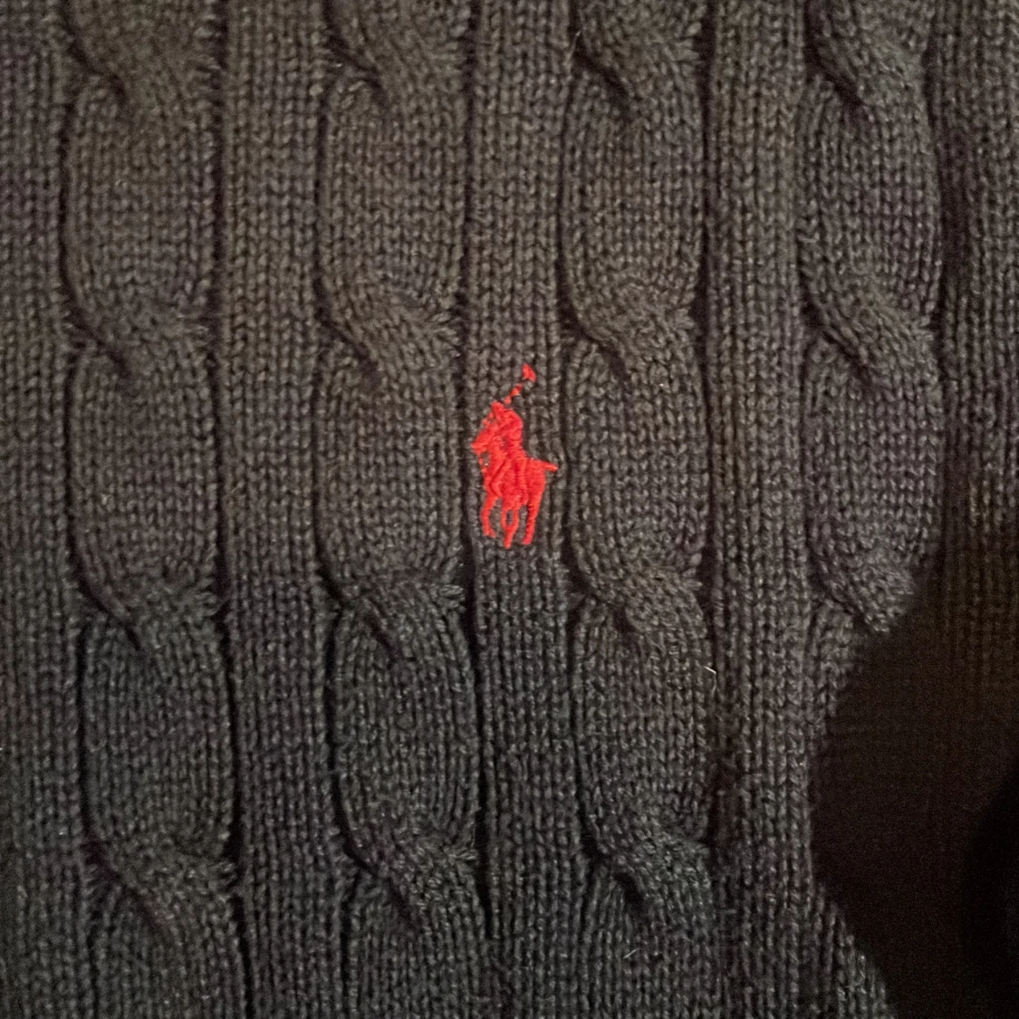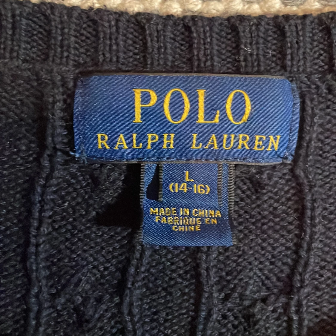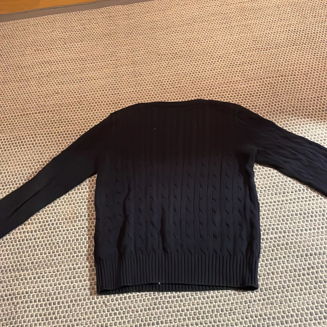 Mörkblå kabelstickad Ralph Lauren tröja. Den är i mycket bra skick utan några defekter. Skriv gärna om du har några frågor.