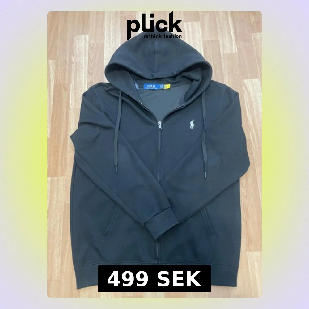 Svart zip-hoodie Klassisk svart zip-hoodie Mjuk och bekväm bomullskvalitet, med dragsko i huvan och två sidofickor. Vit broderad logga på bröstet. Skick: Mycket bra begagnat skick – inga fläckar eller hål, endast lätt normal användning. Storlek: (L men passar även M.) Passform: Regular fit Färg: Svart Perfekt vardagsplagg som funkar året runt. Hör av dig om du vill ha fler bilder eller exakta mått!