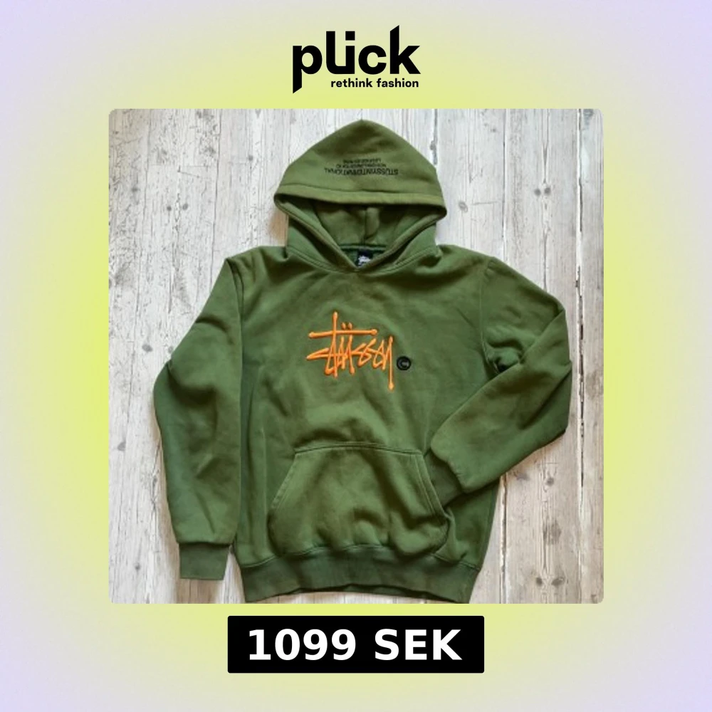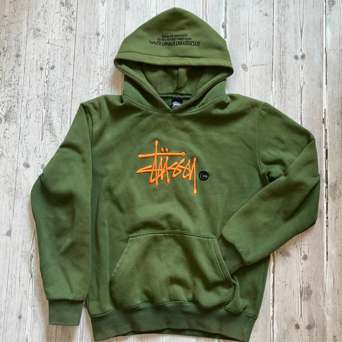 Säljer en väldigt sällsynt grön stüssy copyright hoodie, Med fet orange broderad logga på bröstet och svart tryck i luvan. Klassisk känguruficka och ribbade muddar. Perfekt streetwear-vibe.