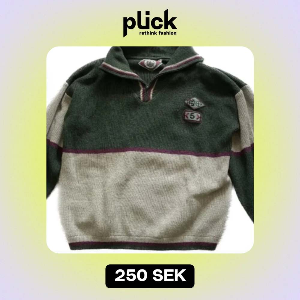 Retro varmare tröja i 50% ull. Går att dra upp dragkedjan till polokrage.