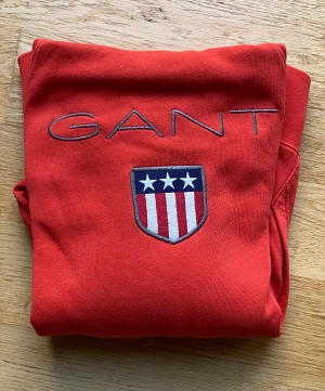 Röd/Orange Gant Hoodie i mycket fint skick, inga fläckar och knappt använd, strl: Herr S