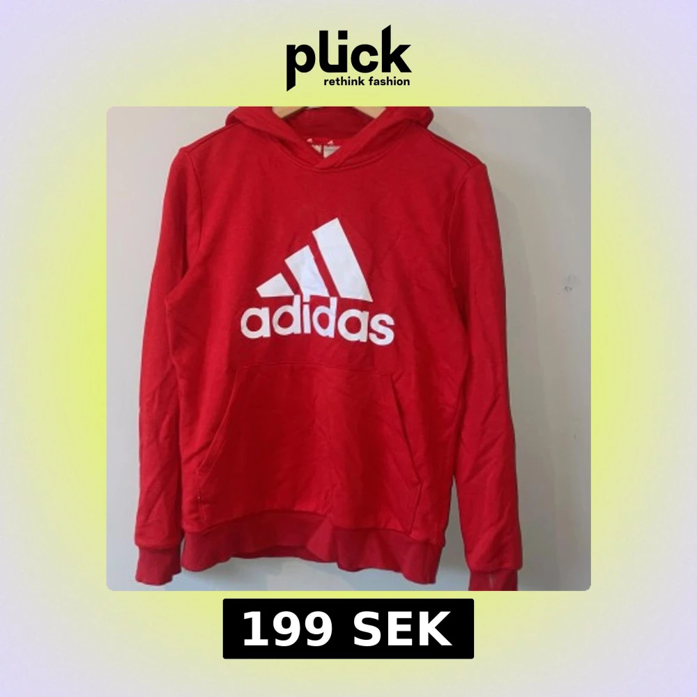 Säljer en snygg röd hoodie från Adidas med det klassiska logotyptrycket i vitt på framsidan. Tröjan har en bekväm huva och en praktisk magficka. Perfekt för en sportig look eller avslappnade dagar.