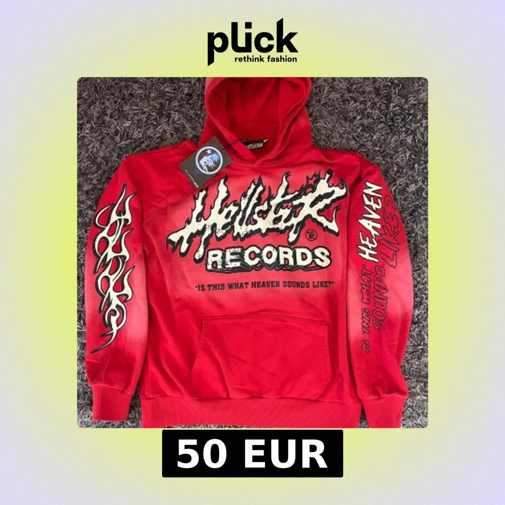 Röd hoodie från Hellstar Records med tryck