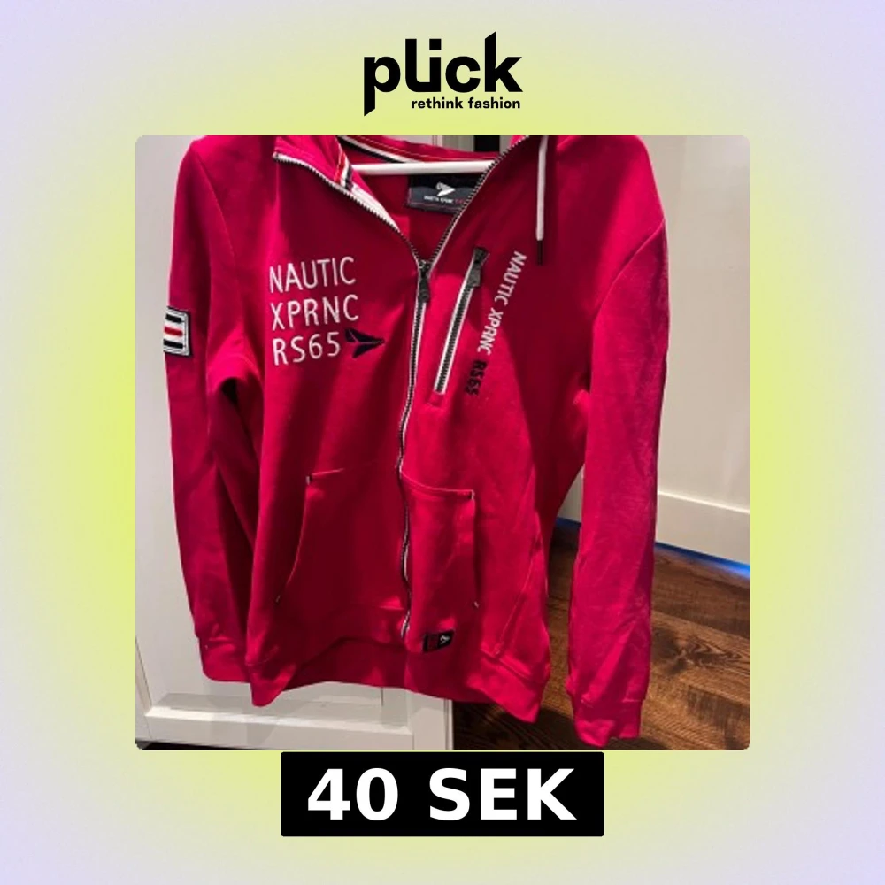 Röd hoodie med dragkedja från Nautic XPRNC RS65. Har vita tryckdetaljer, bröstficka med dragkedja och huva med snörning. Tillverkad i ekologisk bomull och har en sportig look med randiga detaljer vid dragkedjan.