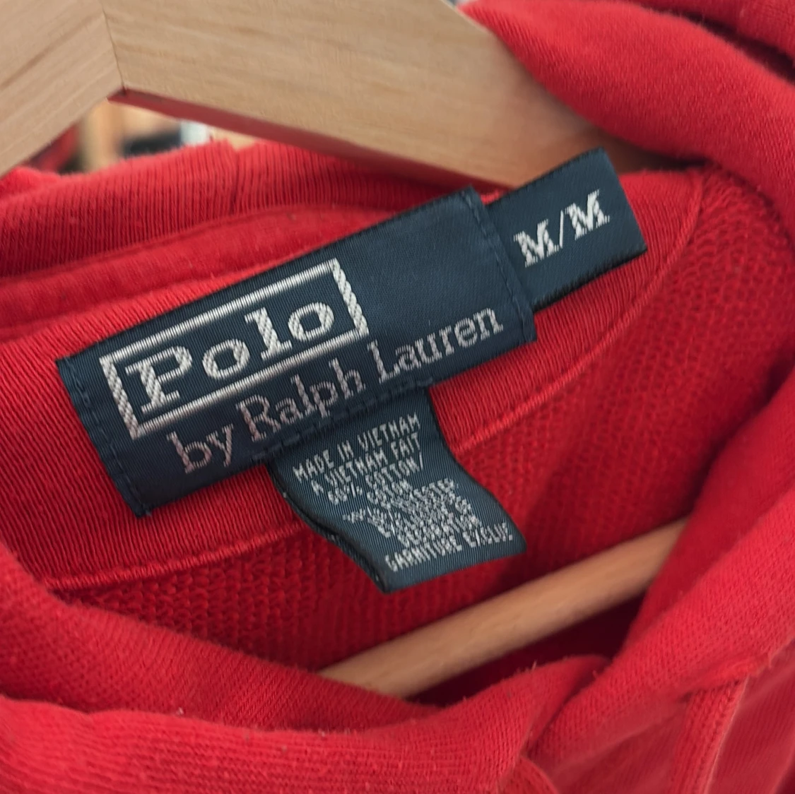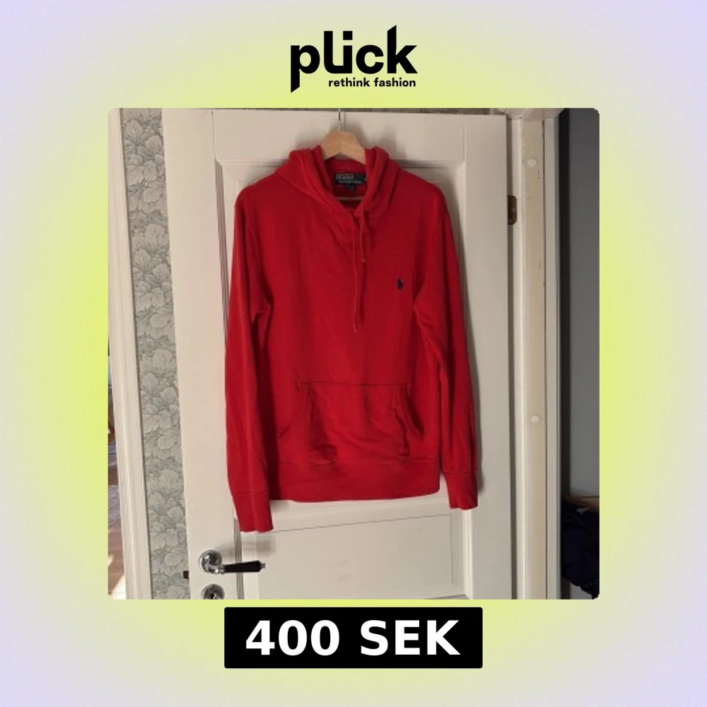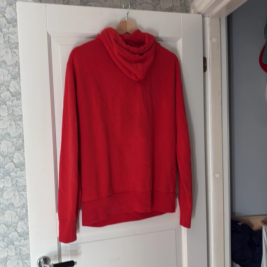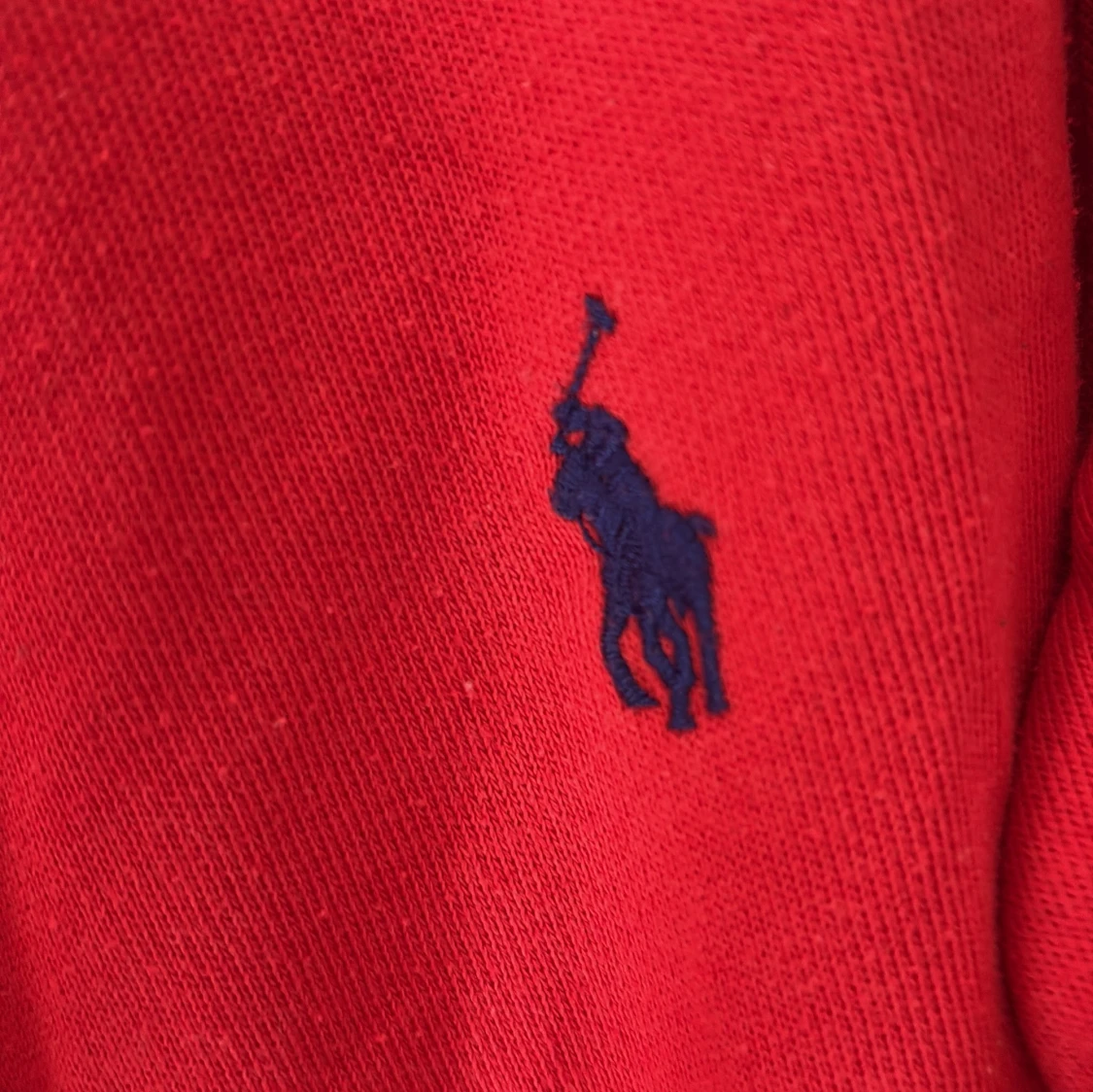 Snygg röd hoodie från Polo Ralph Lauren med klassisk blå broderad logga på bröstet. Tröjan har huva med snörning, stor magficka och långa ärmar. Tillverkad i mjuk bomull som är skön att ha på sig. Perfekt för chill dagar eller när du vill ha en clean look. OBS Priset kan diskuteras vid snabb affär!