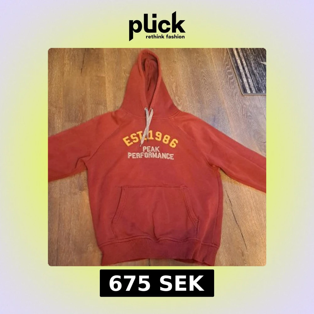 Säljer en röd hoodie från Peak Performance i storlek L. Tröjan har huva med snörning, stor magficka och tryck i gult och vitt framtill. Tillverkad i mjuk bomullsmix, perfekt för chill dagar eller när du vill ha en sportig look.