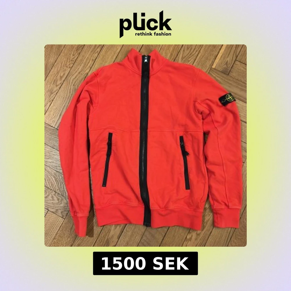 Snygg röd jacka från Stone Island med svarta dragkedjor och en ikonisk logga på ärmen. Jackan har långa ärmar och praktiska fickor med dragkedja. Perfekt för en stilren look.