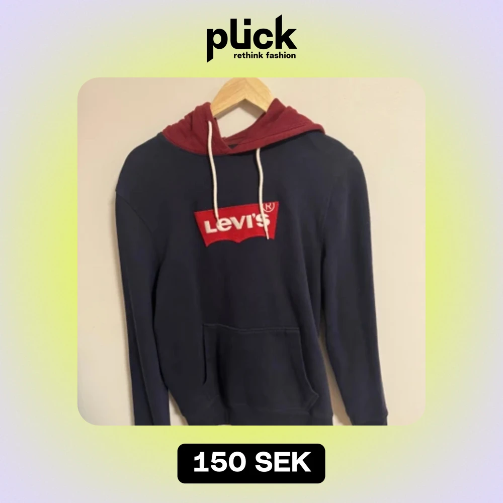 Storlek S Blå hoodie röd luva Levis!