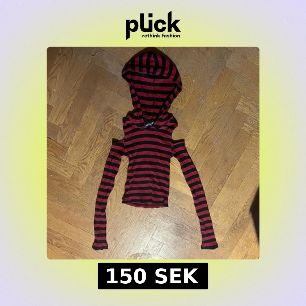 En tight tröja med hål på axlarna och luva! Ärmarna har hål för tummen, den är även cropped. Tyvärr inte min stil längre men jag hoppas någon kan vara gladare för den🫶 Knappast använd då jag fick den ny i födelsedagspresent! Den är väldigt stretchig och sitter tight även för mig som har xs.