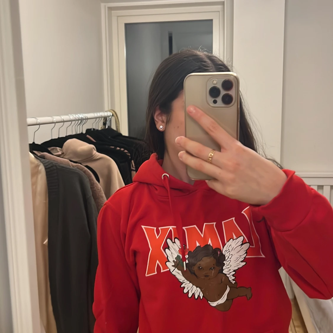 Lamix ängel hoodie limited edition röd med ros, säljs inte längre. Storlek S använd några fåtal gånger. Frakt är 50kr.