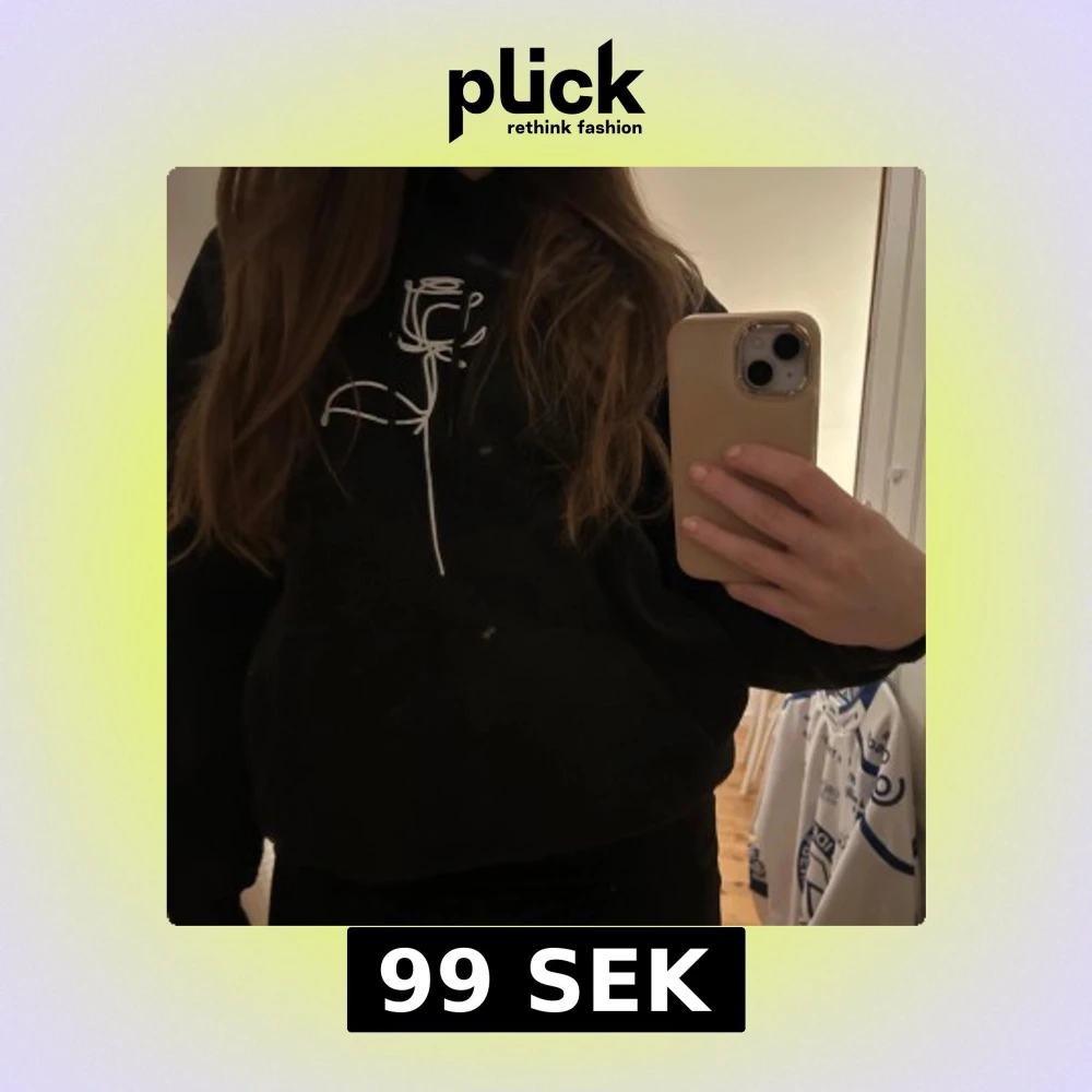 Svart hoodie med tryck av en vit ros, storlek xs