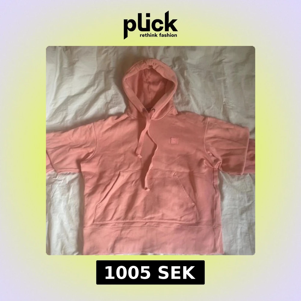 Säljer en snygg rosa hoodie från Acne Studios med klassisk smiley-patch på bröstet. Tröjan har huva med snörning och stor magficka framtill. Mjuk bomullskvalitet och loose passform, perfekt för chill dagar.