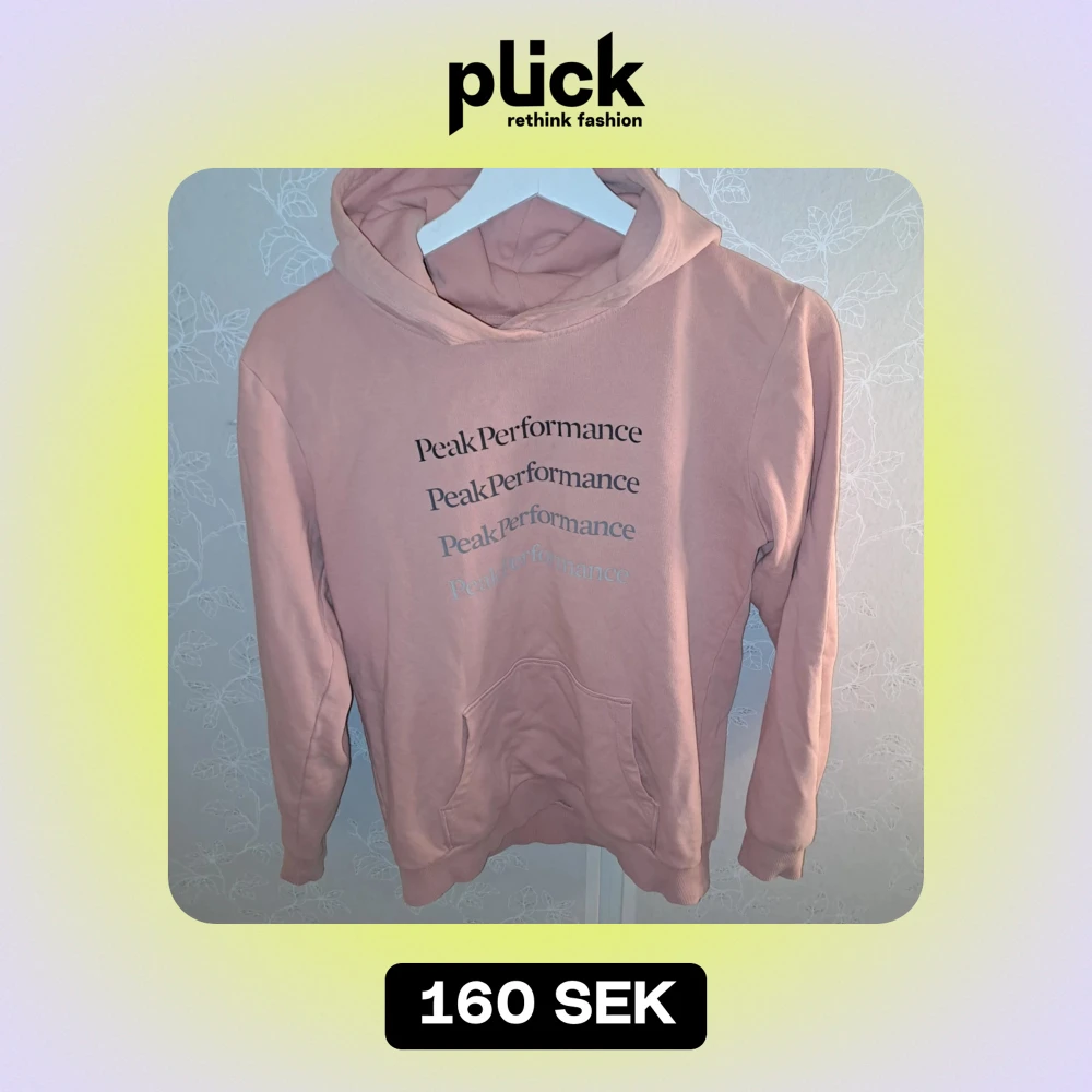 Säljer för att den är för liten för mig😊 en superfin rosa hoodie från Peak Performance i storlek 160. Den är i bra skick och har en mysig känguruficka framtill. Perfekt för både höst och vår! 💖
