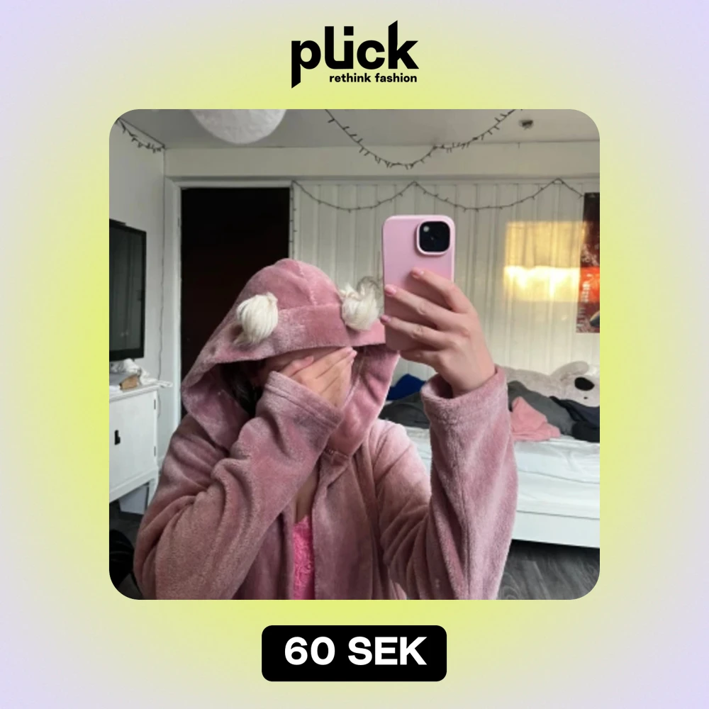 Rosa morgonrock med två små söta tussar vid huvan. Storlek 170. I bra skick. Alla kläder tvättas innan dem skickas!