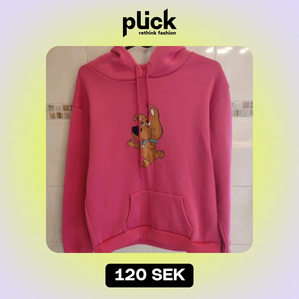 Rosa hoodie med Scooby doo print på, ficka i fram och luva.