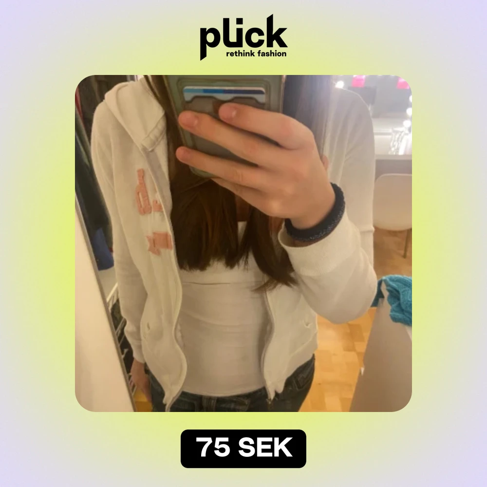 Snygg tunn vit zip-up tröja med rosa text från abercrombi kids. Storlek L, passar mig som har storlek XS/S i vanliga fall! Kontakta mig vid intresse!❤️
