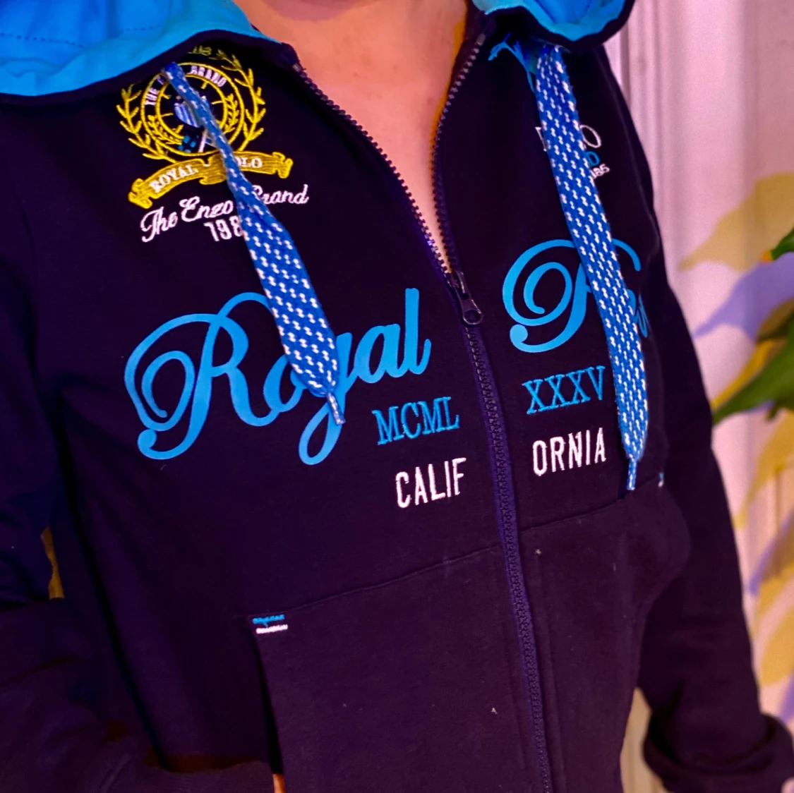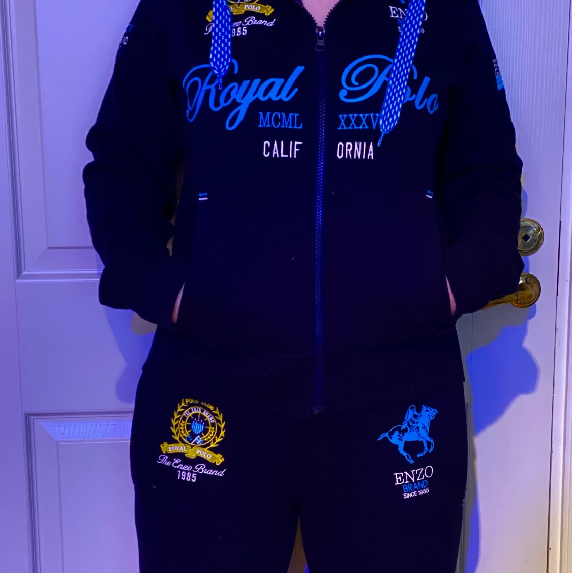 Mjukisdress i mörkblått från Royal Polo. Väldigt skönt material och är i bra skick. Kan även säljas separat! Köparen står för frakten! 😘