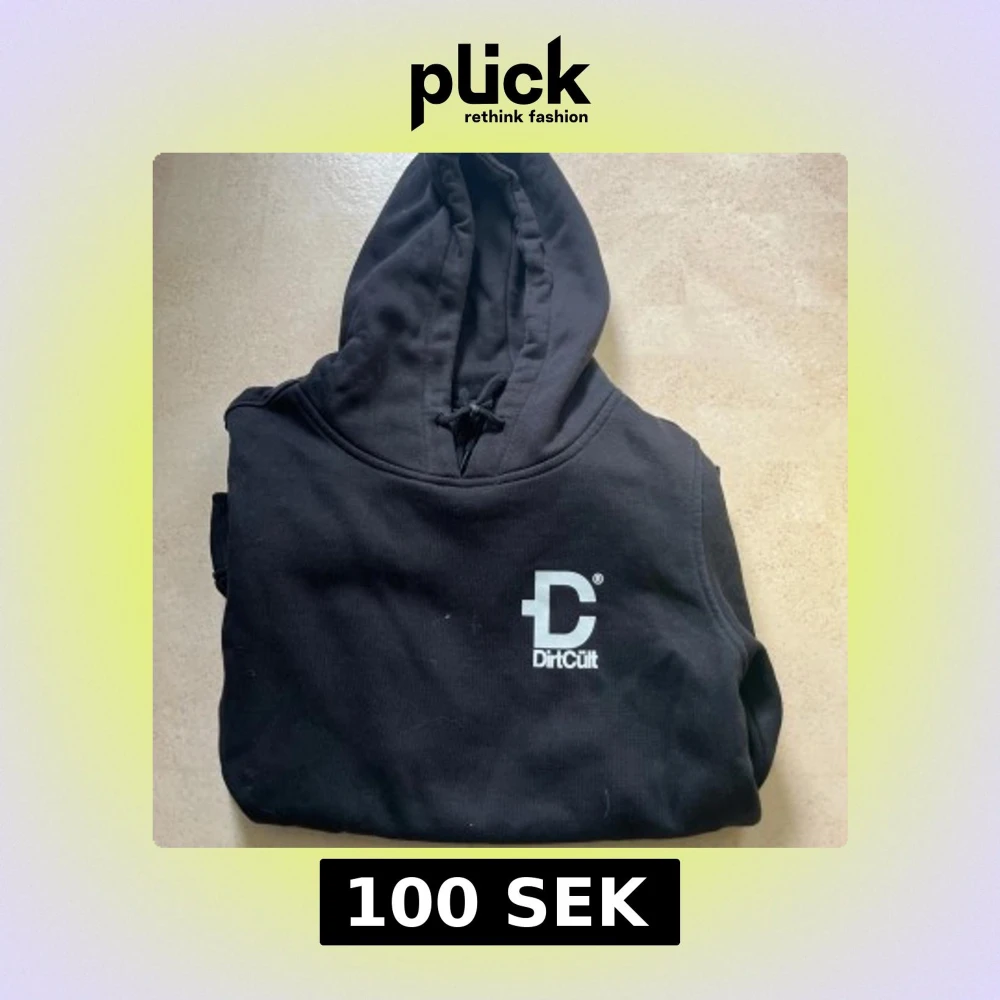 Svart hoodie från DirtCult med vit logga på bröstet. Klassisk huva med snörning och mjukt material som känns skönt mot huden. Perfekt för dig som gillar streetwear och enkel stil.