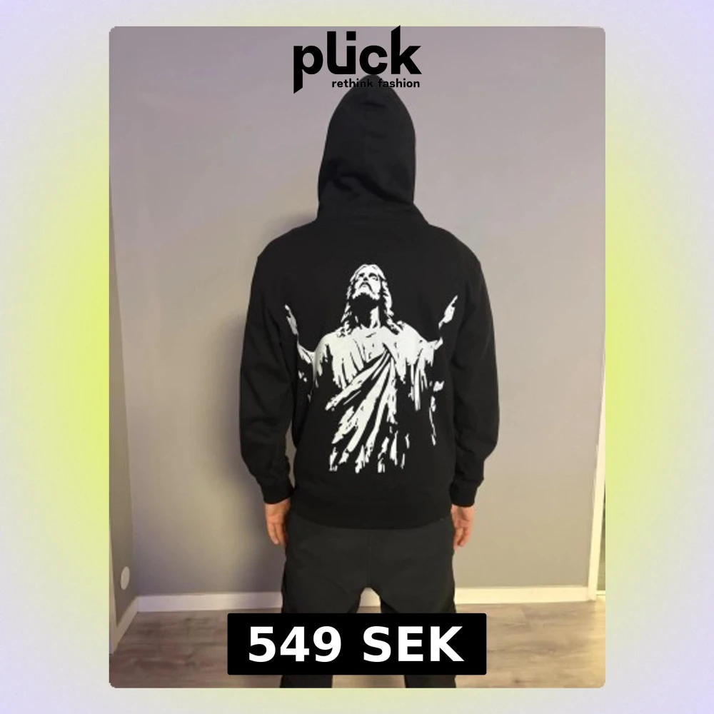 Svart hoodie med stor Jesus-tryck(ThruChrist)