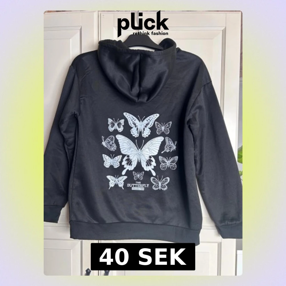 Svart hoddie med tryck på ryggen i storlek S