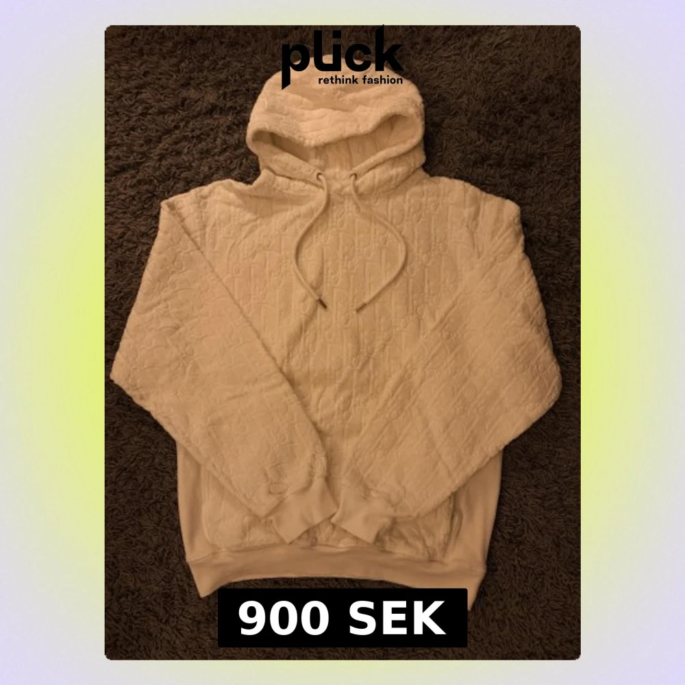Exklusiv vit märke hoodie med upphöjt monogrammönster över hela tröjan. Tröjan har huva med snörning, ribbade muddar och en mjuk, lyxig känsla. Perfekt för dig som vill ha en clean och stilren look med designer-vibe.