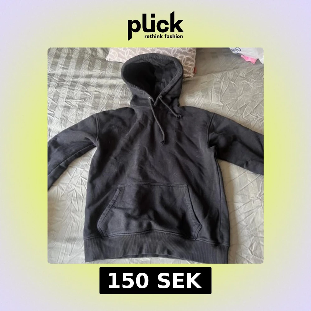 Säljer en klassisk svart hoodie med justerbar huva. Perfekt för en avslappnad stil och passar till det mesta. Skön och enkel att bära.