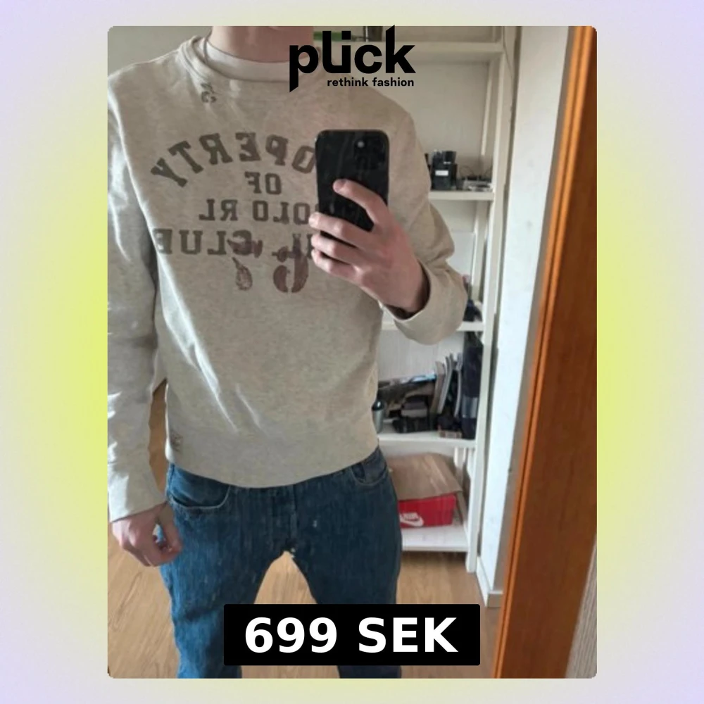 Säljer en beige sweatshirt från Polo RL Club med tryck i brunt framtill. Tröjan har rund halsringning, ribbade muddar och en liten patch nertill. Tillverkad i mjukt bomullsmaterial och har en avslappnad passform. Perfekt för en chill och stilren look.