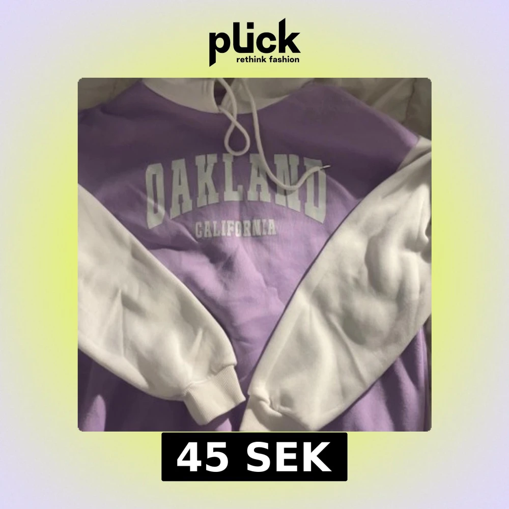 Snygg hoodie i ljuslila med vita ärmar och huva. Tryck med texten 'OAKLAND CALIFORNIA' på bröstet. Tröjan har snörning vid huvan och ribbade muddar. Perfekt för dig som gillar college-vibe och streetstyle.