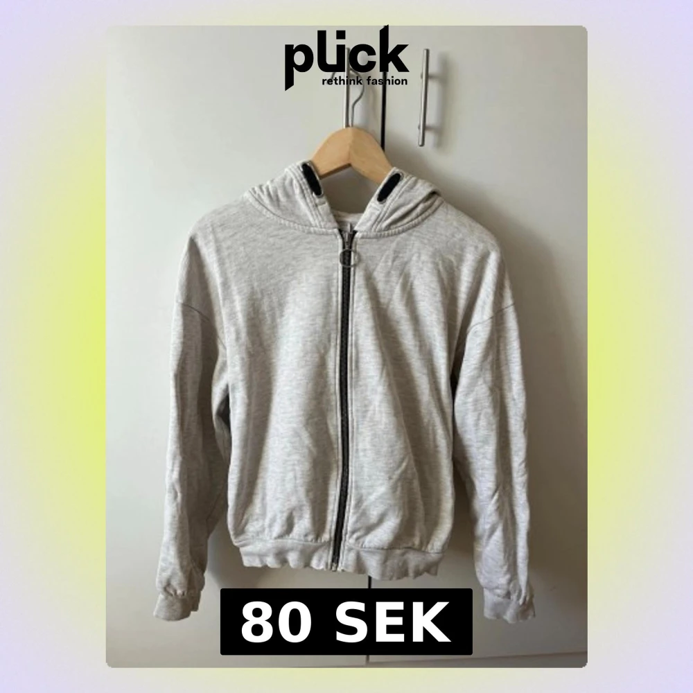 Ljusgrå hoodie med dragkedja framtill och svarta detaljer💕💕