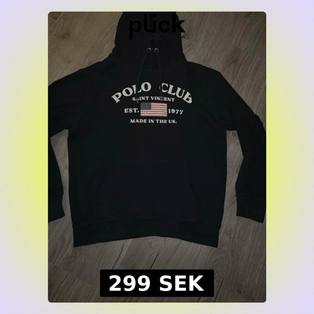 Svart hoodie från Polo Club Saint Vincent med tryck framtill som inkluderar amerikansk flagga och texten 'EST. 1977 MADE IN THE US’ Det är storlek S på denna och passar någon kring 165-173