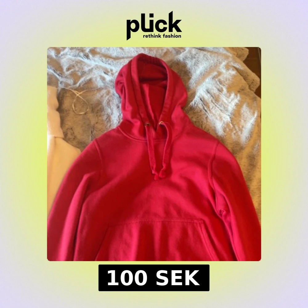 Säljer en klassisk röd hoodie med justerbara snören i huvan och en stor magficka framtill. Perfekt för en avslappnad stil och bekväm att bära under kyligare dagar.💓