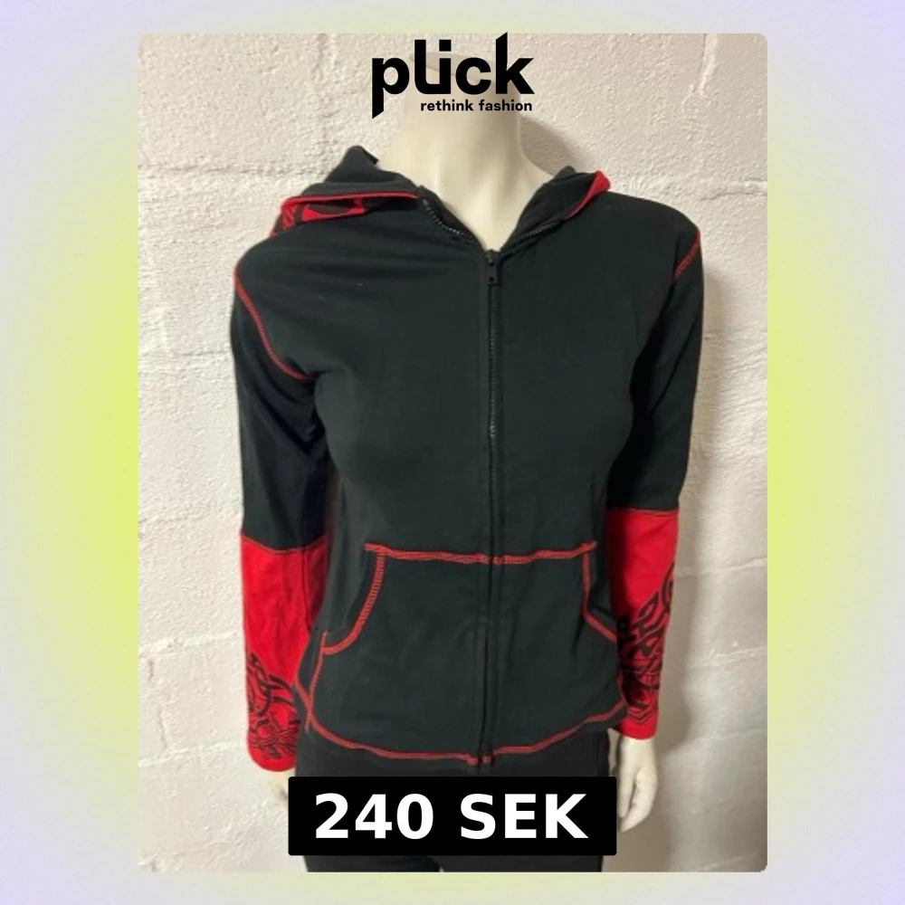HUVJACKA med spetsig huva . Storlek S. Material i 100% bomull. Lite tunnare tyg än collegematerial. Endast provad.