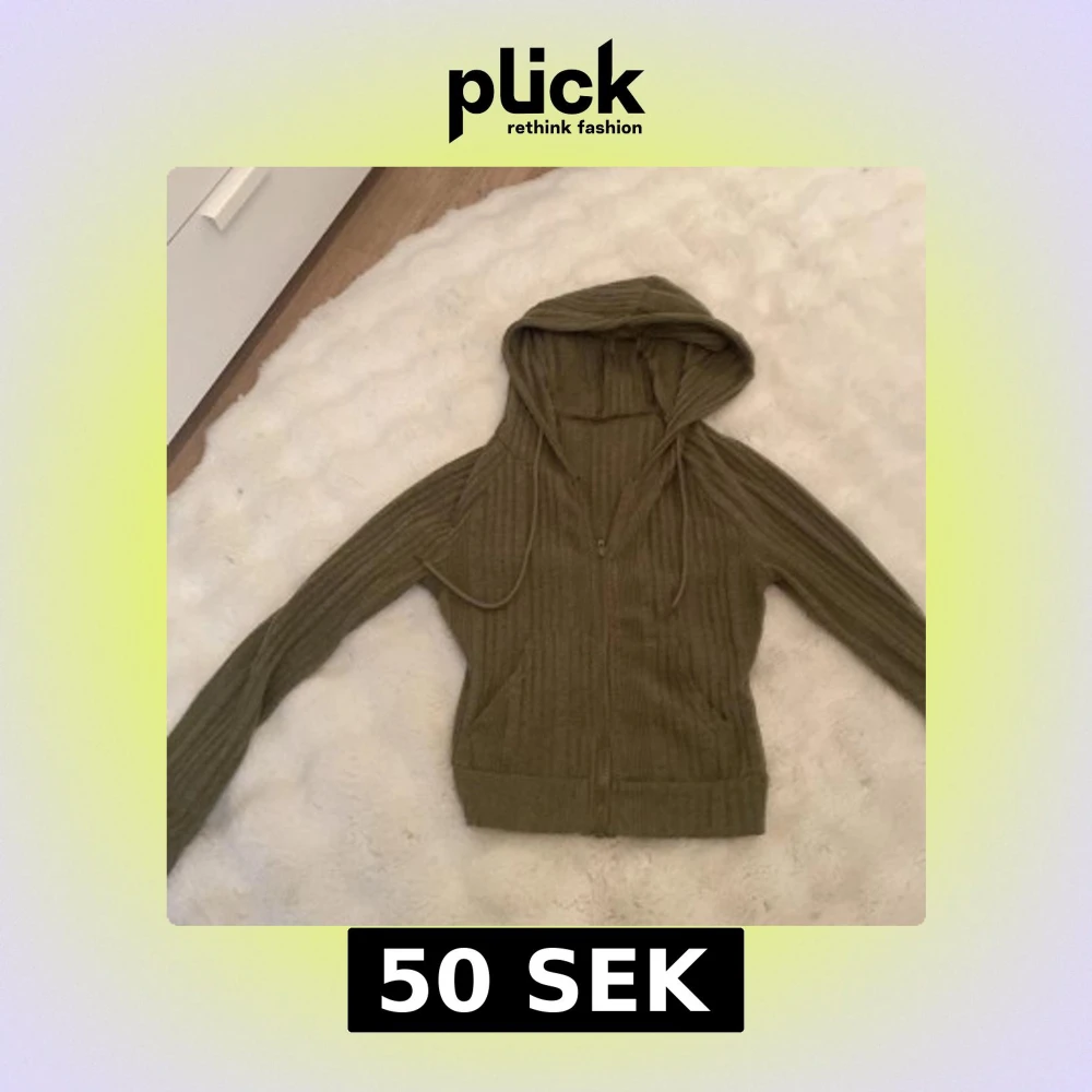 En grön/olivgrön tröja som har ungefär storlek xs/s. Vet ej från vart!! Den är snygg, kort och passar perfekt för lowaist jeans.