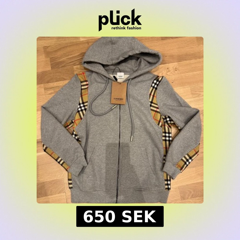 Snygg grå hoodie från Burberry med klassiska rutiga paneler längs ärmarna. Tröjan har dragkedja framtill, huva med snörning och två fickor. Perfekt för dig som vill ha en stilren streetlook med lyxig touch.