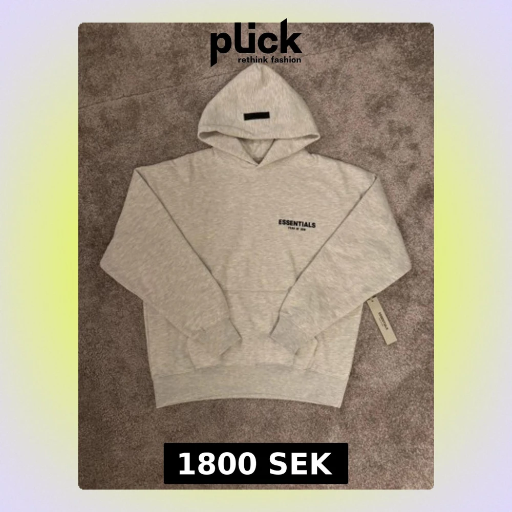 Snygg äkta ljusgrå hoodie från Essentials Fear of God med svart logga på bröstet och stor tryckt logga på ryggen. Köpt ifrån farfetch för 3380kr. Perfekt för en clean och stilren streetwear-look. Priset kan diskuteras