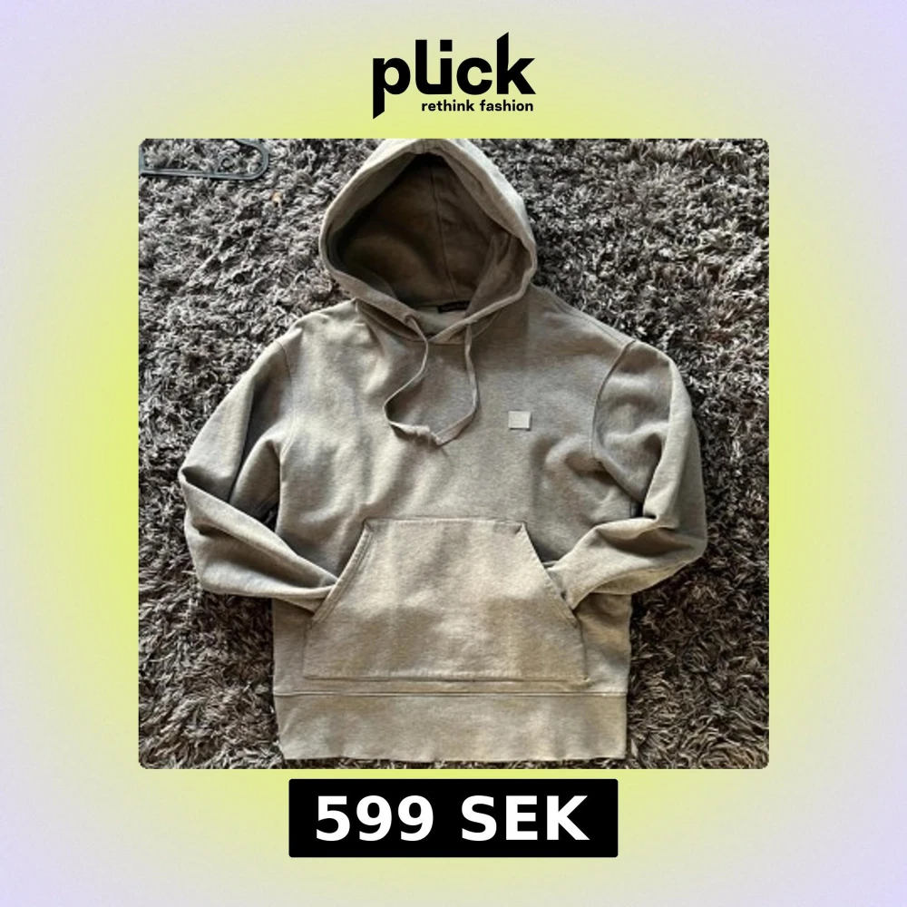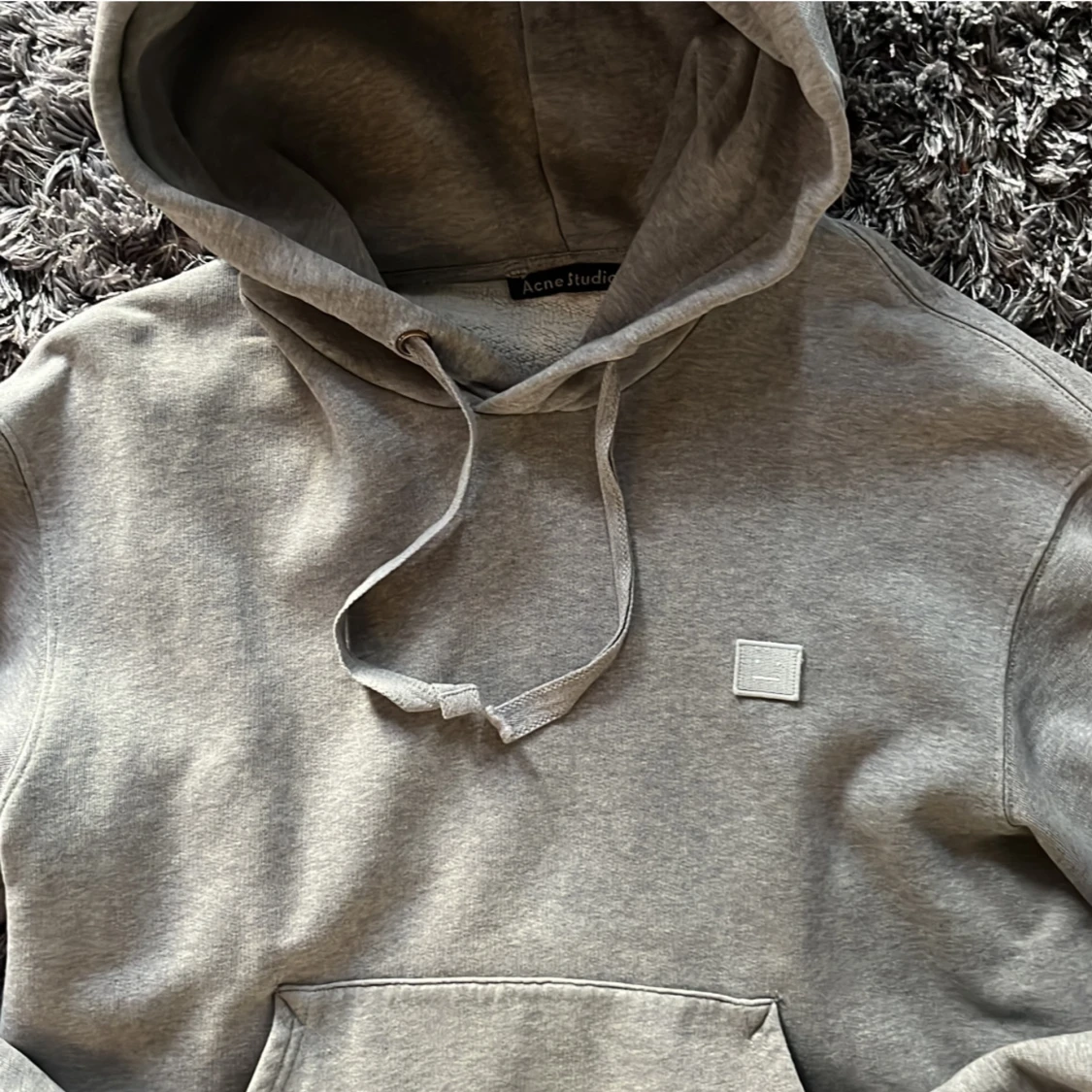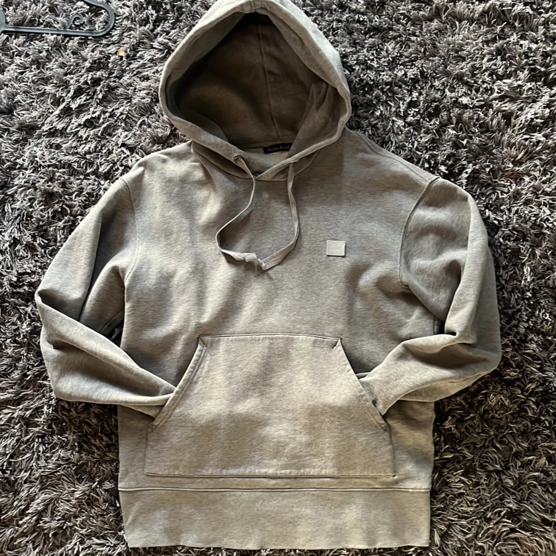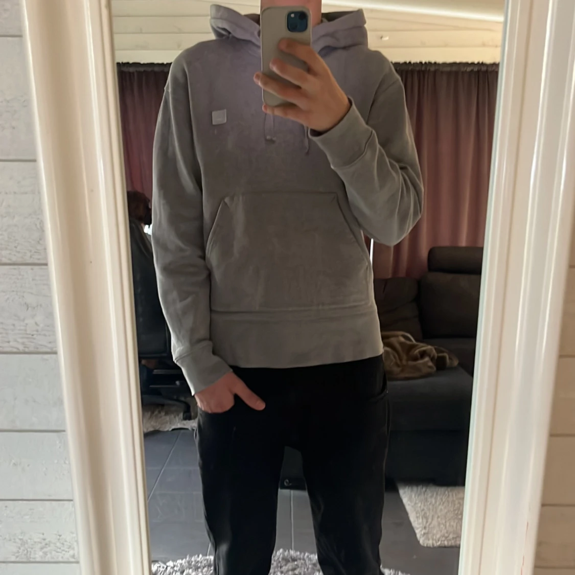 Acne hoodie i grå färg. Storleken är s men passar även m. Liten defekt som ni ser på sista bilden därav de låga priset