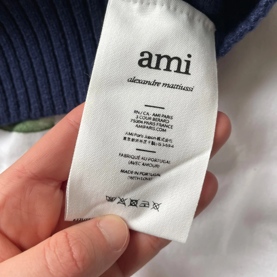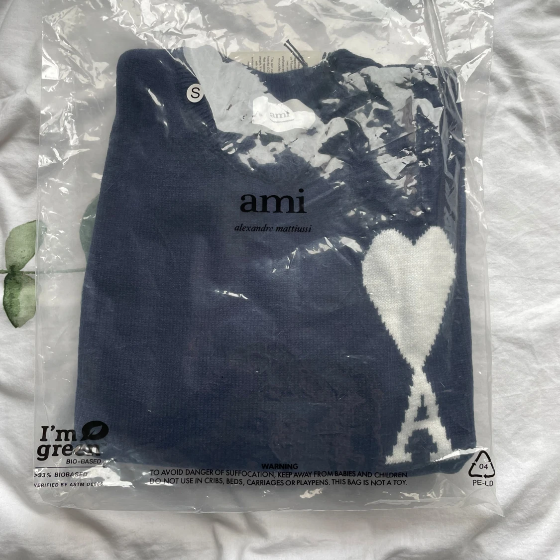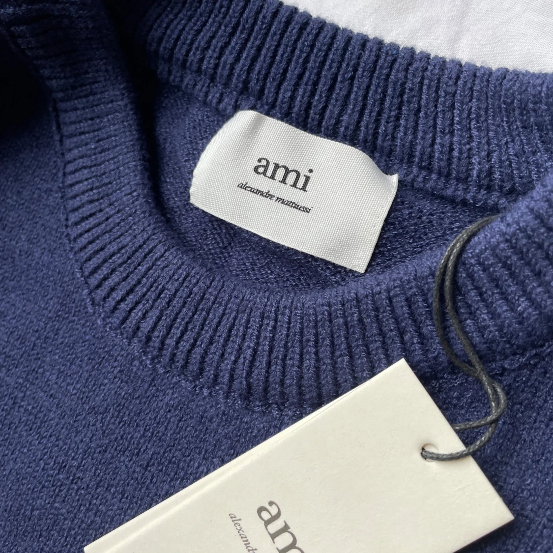 Ny Ami paris sweatshirt / sweater i färgen navy blå. Hade pả mig en gäng och tyvärr den var for stor. Kommer med taggen och allting o priset kan diskuteras