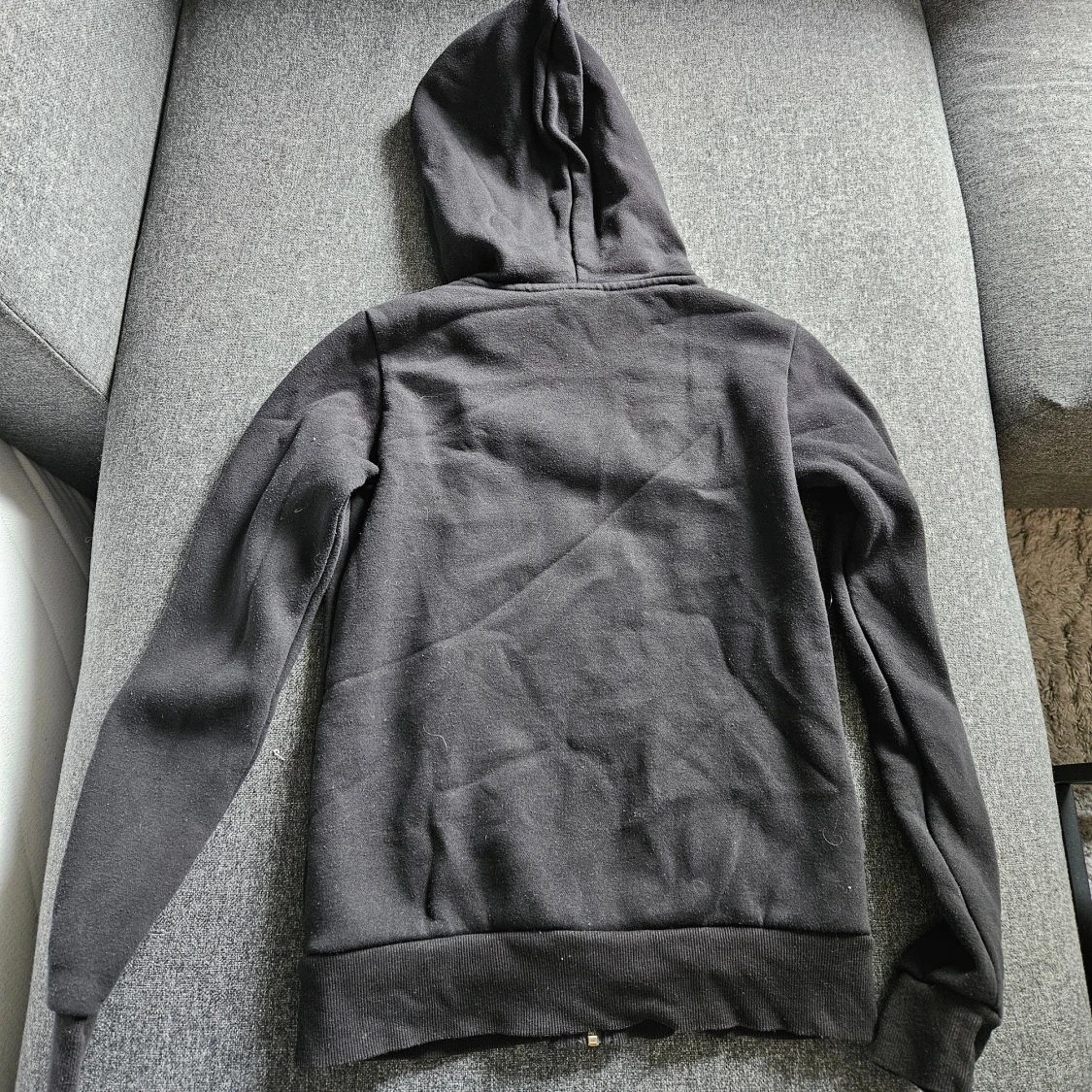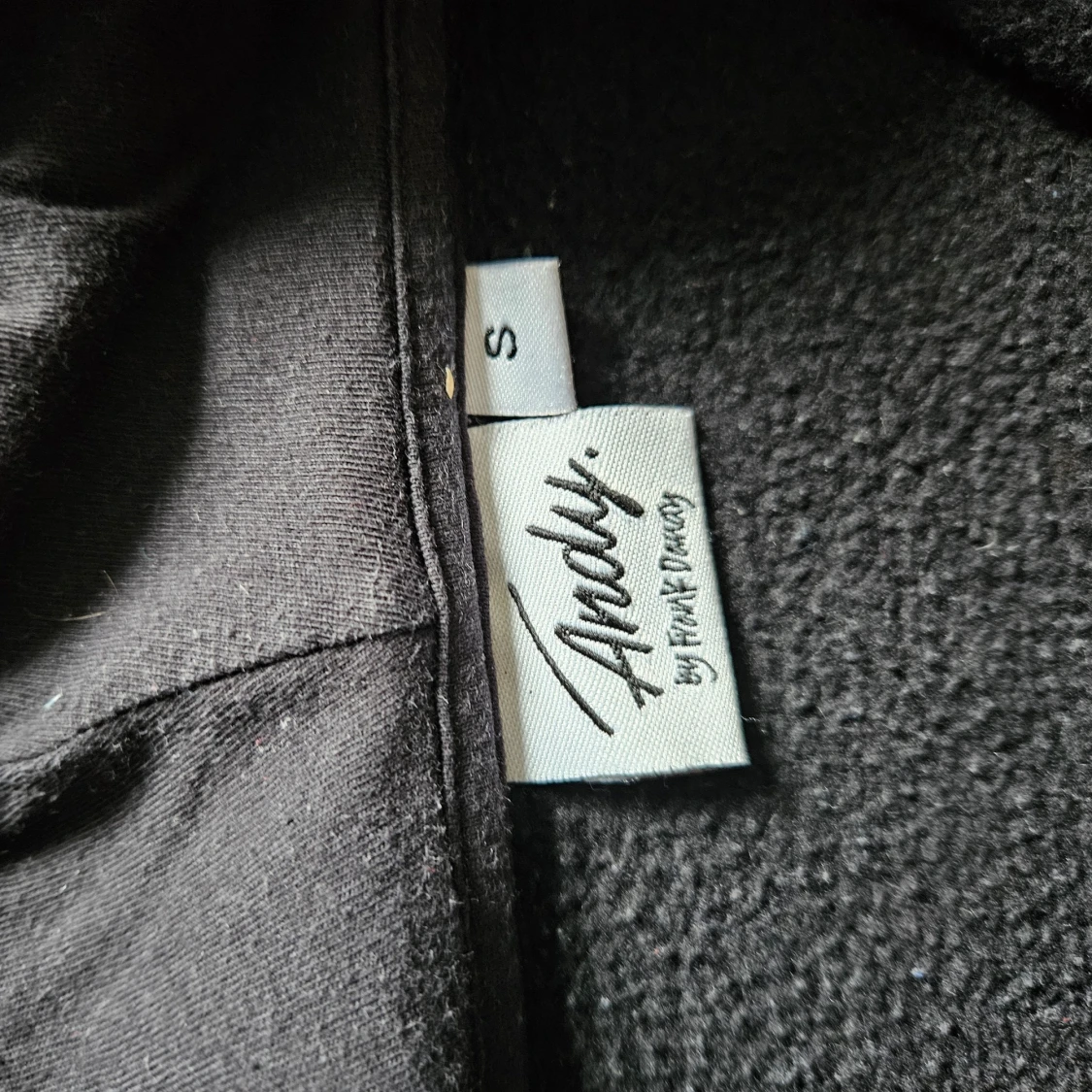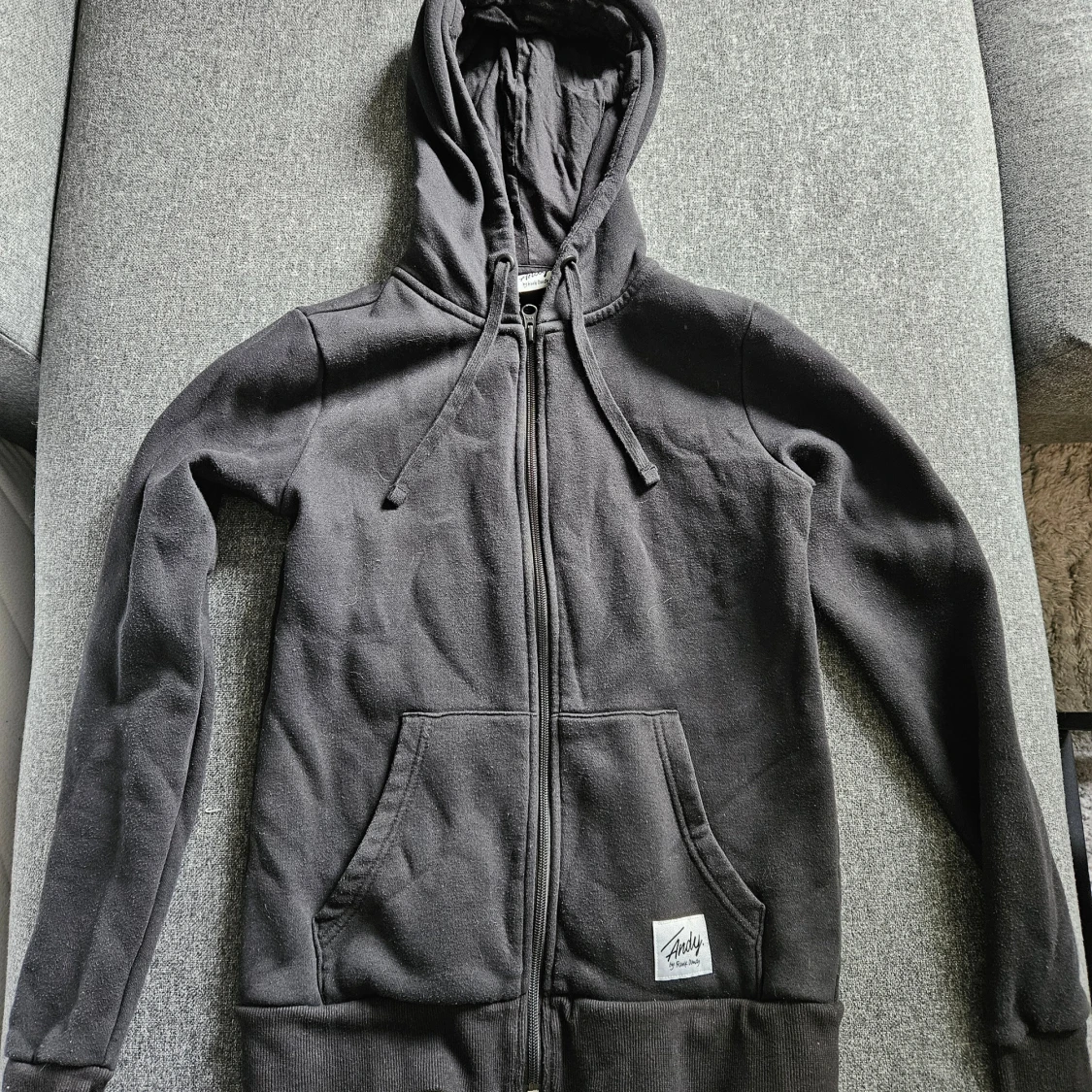 Svart hoodie med dragkedja från Andy by Frank Dandy. Tröjan har huva med snörning, två stora fickor framtill och ribbade muddar. Perfekt för kyliga dagar och enkel att matcha med jeans eller joggers.