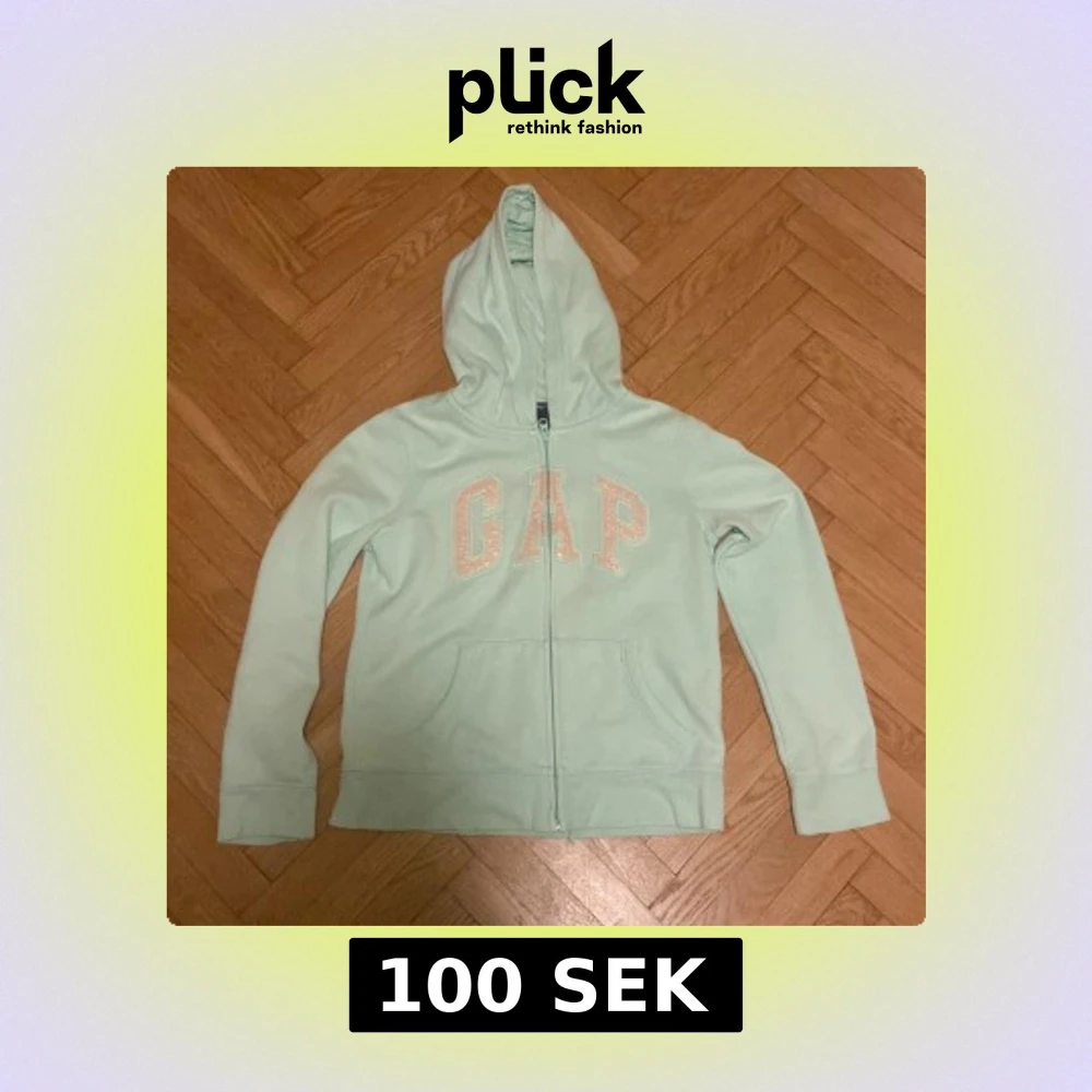 Säljer en ljusgrön hoodie från GAP med dragkedja och stor logga framtill. Tröjan har långa ärmar och en praktisk huva. Perfekt för en avslappnad stil. Står väldigt konstigt i storlekarna då den är köpt i Usa men skulle uppskatta är den är i storlek s här i Sverige.