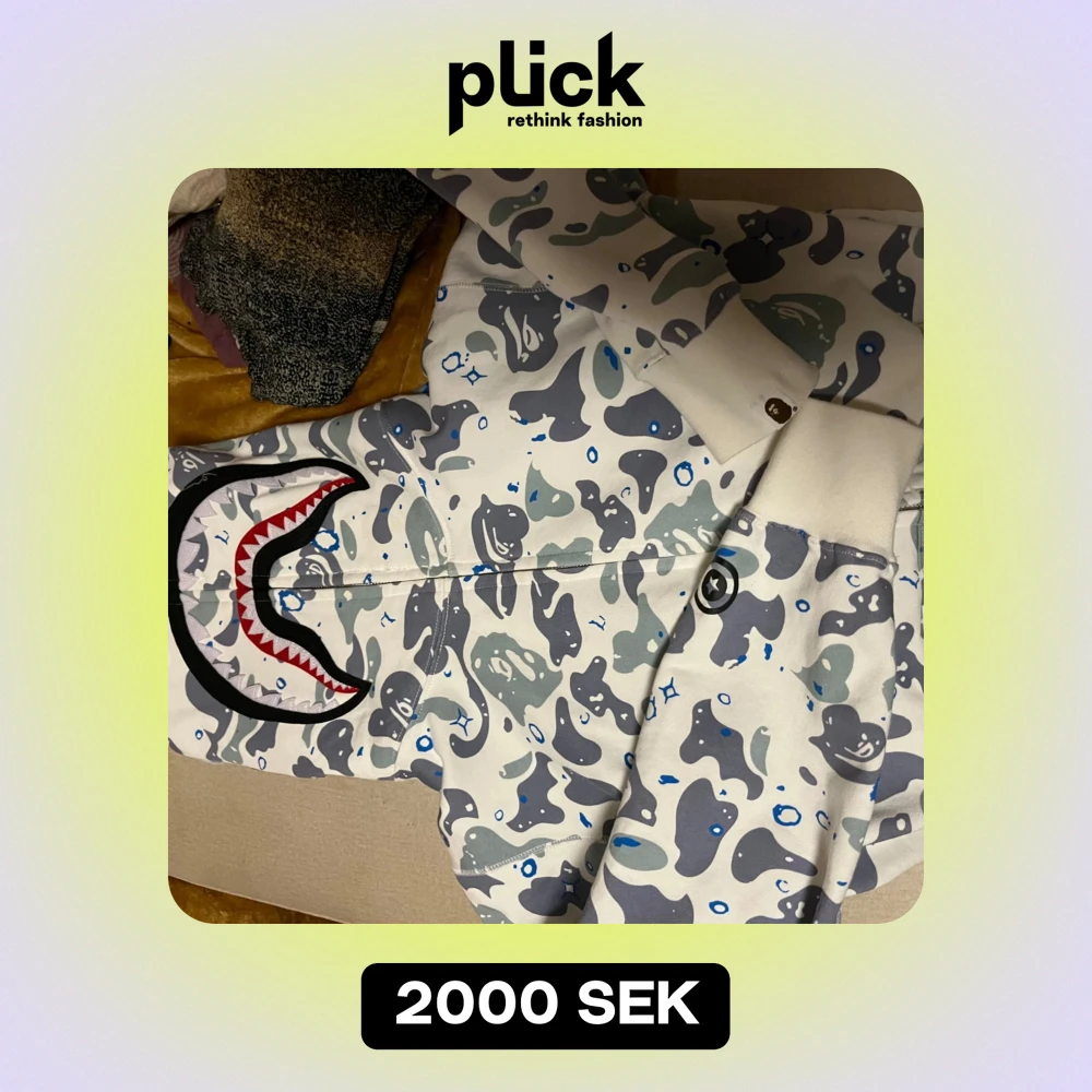 Säljer en BAPE hoodie med grått och blått camouflagemönster och ett hajmotiv på huvan. Den har dragkedja dubbla dragkedjor och ett varmt materlial i hoodien, ALDRIG ANVÄNT OCH PRIS KAN DISKUTERAS!