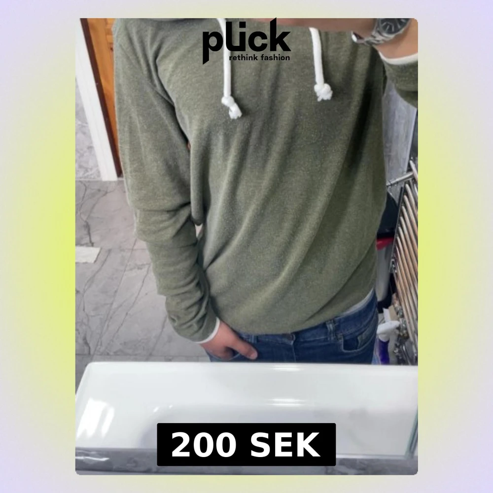 Snygg olivgrön hoodie med vita dragsnören i huvan. Hoodien har en avslappnad passform och långa ärmar, perfekt för en chill och casual stil. Tillverkad i mjukt material som känns skönt mot huden. Passar perfekt till jeans eller joggers.