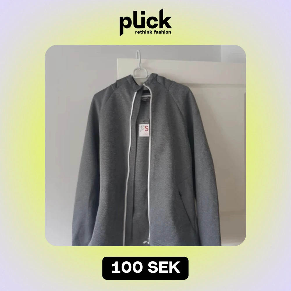 Säljer en snygg och bekväm grå hoodie i storlek S. Den har en dragkedja framtill och en praktisk huva. Perfekt för både vår och höst när det är lite kyligt ute. Den är helt ny med prislapp och passar till det mesta i garderoben.