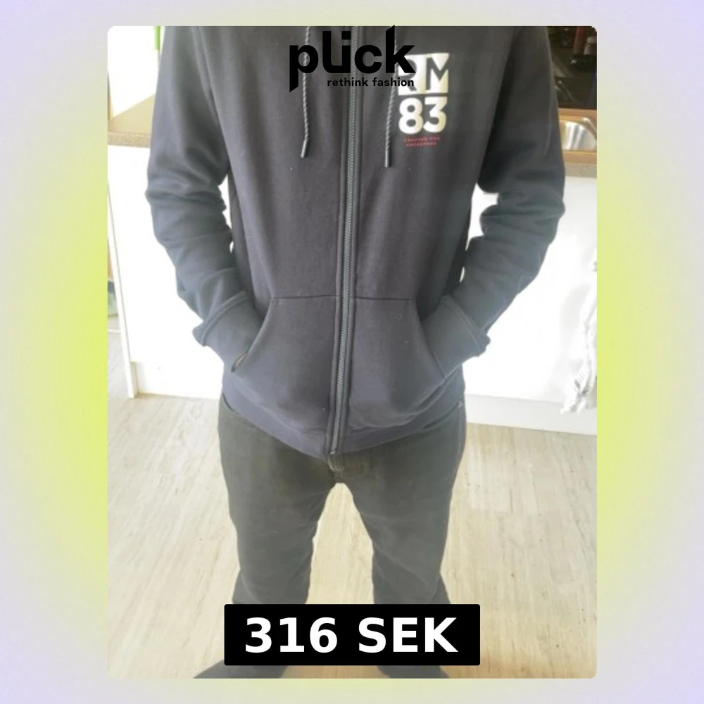 Snygg mörkblå hoodie från RM83 med dragkedja framtill och vit logga på bröstet. Hoodien har huva med dragsko och två stora fickor framtill. Perfekt för en avslappnad och cool stil. Materialet känns mjukt och bekvämt.