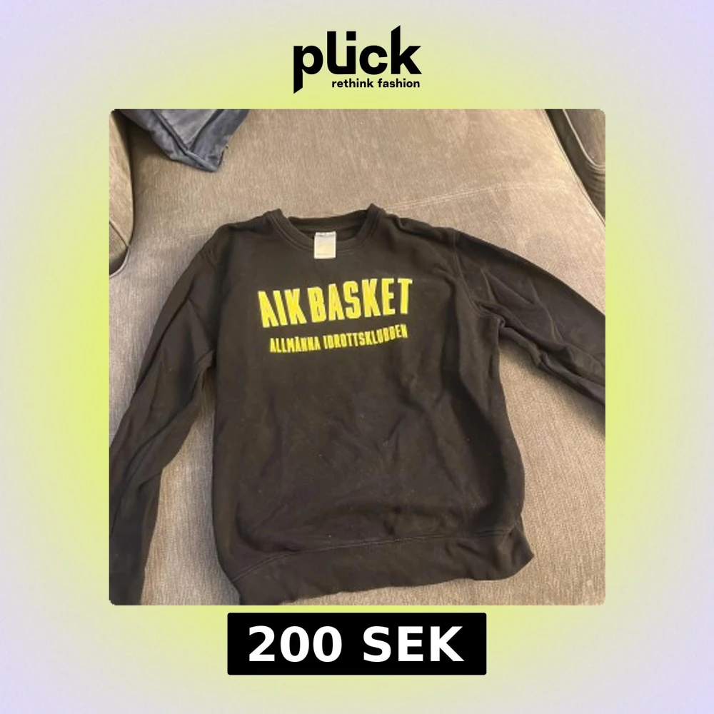 Säljer en svart tröja med AIK Basket-tryck i gult.