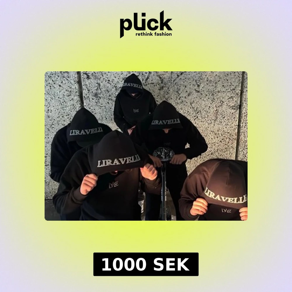 Svart hoodie från Liravelle med stor vit logga broderad på huvan och mindre tryck på bröstet. Klassisk passform med huva och långa ärmar, perfekt för dig som gillar streetwear och vill sticka ut med en clean look. Kan träffas i Stockholm och frakta till hela Sverige. Hela dressen för bara 999kr tills 25te december.