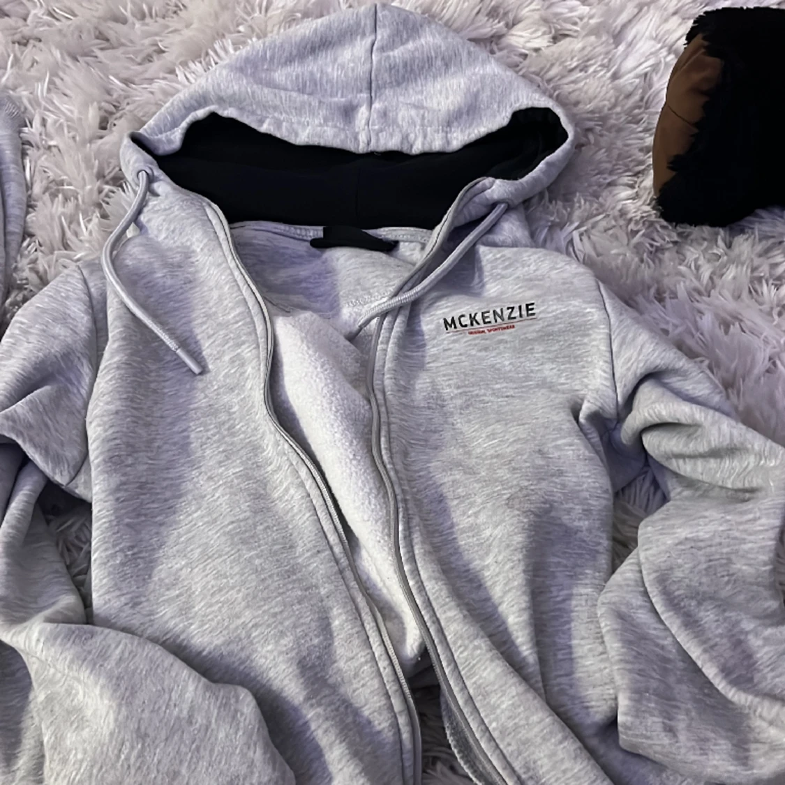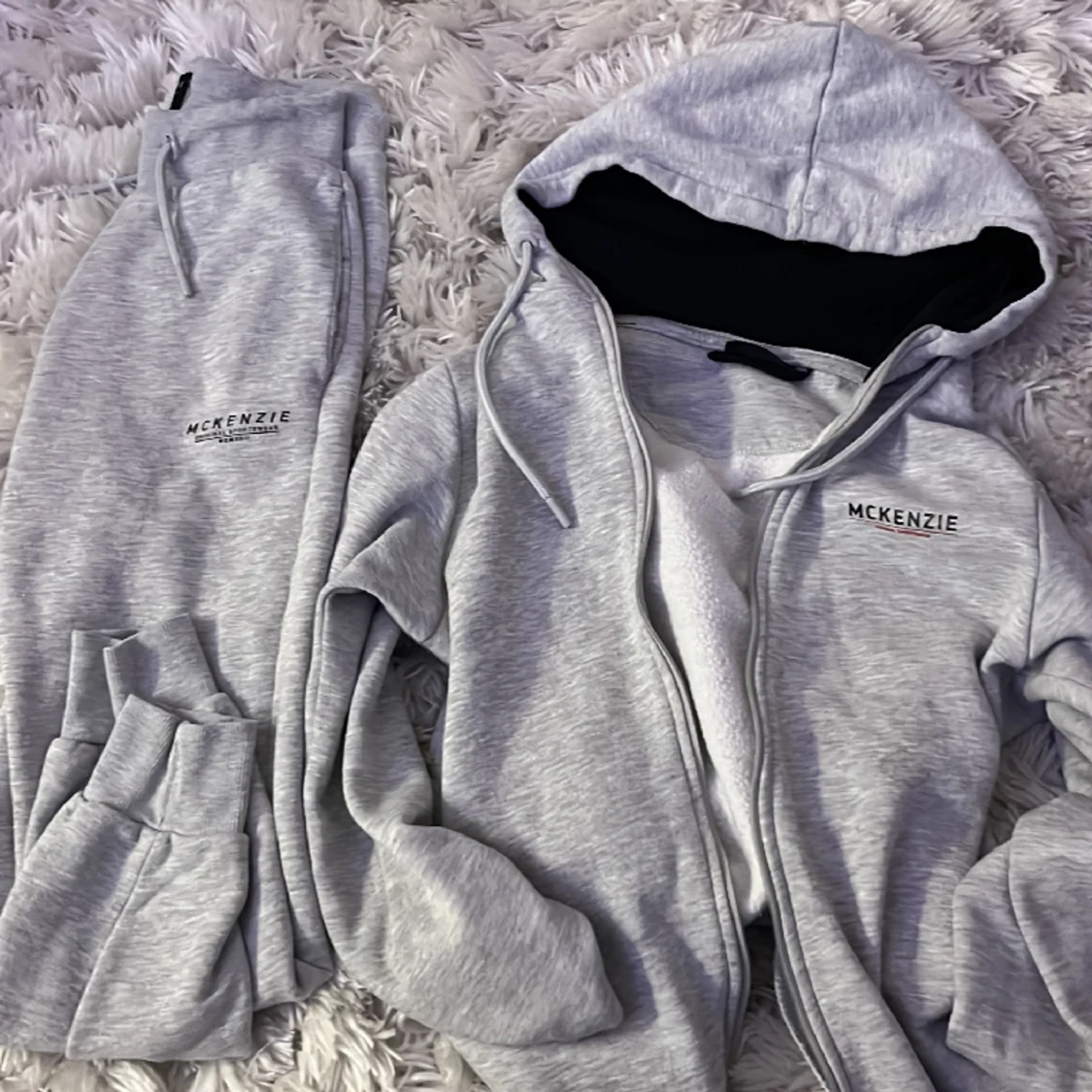 Jätte bekvämt och snyggt Mckenzie sett i ljusgrå. Andvända ett få par gånger o passar i alla lägen .Byxan är M och tröjan S