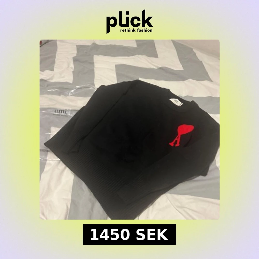 Snygg svart tröja från Ami Alexandre Mattiussi med ett rött hjärta och bokstaven 'A' broderat på bröstet. Passar bara size S, Skulle inte rekommendera denna till någon som kan ha M. Helt oanvänd tröja.